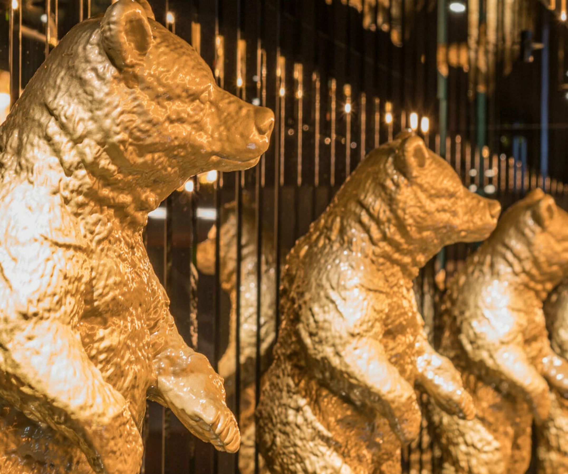 It’s not hard to figure out the theme of our interior design – everything revolves around Berlin as a city of film. This includes Berlin’s emblem, the bear, which forms part of our welcoming committee! A shiny version can be won as a trophy in the Berlinale.
