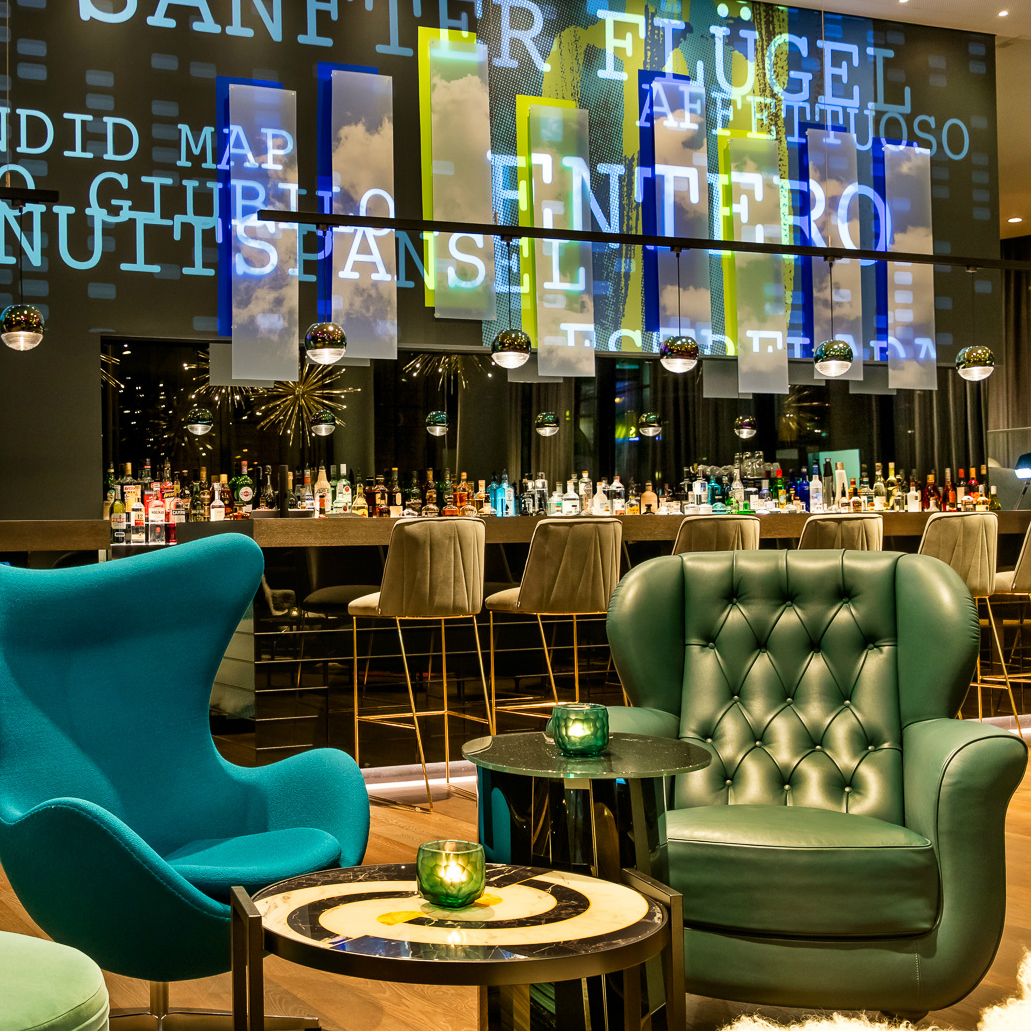 Při relaxaci v našemu hotelu v Bonnu vám možná padne do oka jeho zvláštní interiérový design. Věděli jste, že OSN má v Bonnu sídlo, které se zaměřuje na téma ochrany klimatu a udržitelnosti? Protože nám kromě dobra našich hostů záleží také na ochraně naší planety, zakomponovali jsme do interiéru našeho salónku nástěnnou výzdobu, jejímž námětem je 17 oficiálních cílů OSN pro udržitelný rozvoj. Tato výzdoba posloužila jako hlavní inspirace pro téma našeho designového hotelu v Bonnu. Vybavení interiéru, například závěsná svítidla z PET láhví a recyklovaného kartonu, se nese ve znamení přírodních a udržitelných materiálů a barový pult ze zpracovaného starého dřeva a recyklovaného vybavení z našich dalších hotelů zde vytváří útulnou atmosféru, kterou si můžete vychutnat opravdu s čistým svědomím.