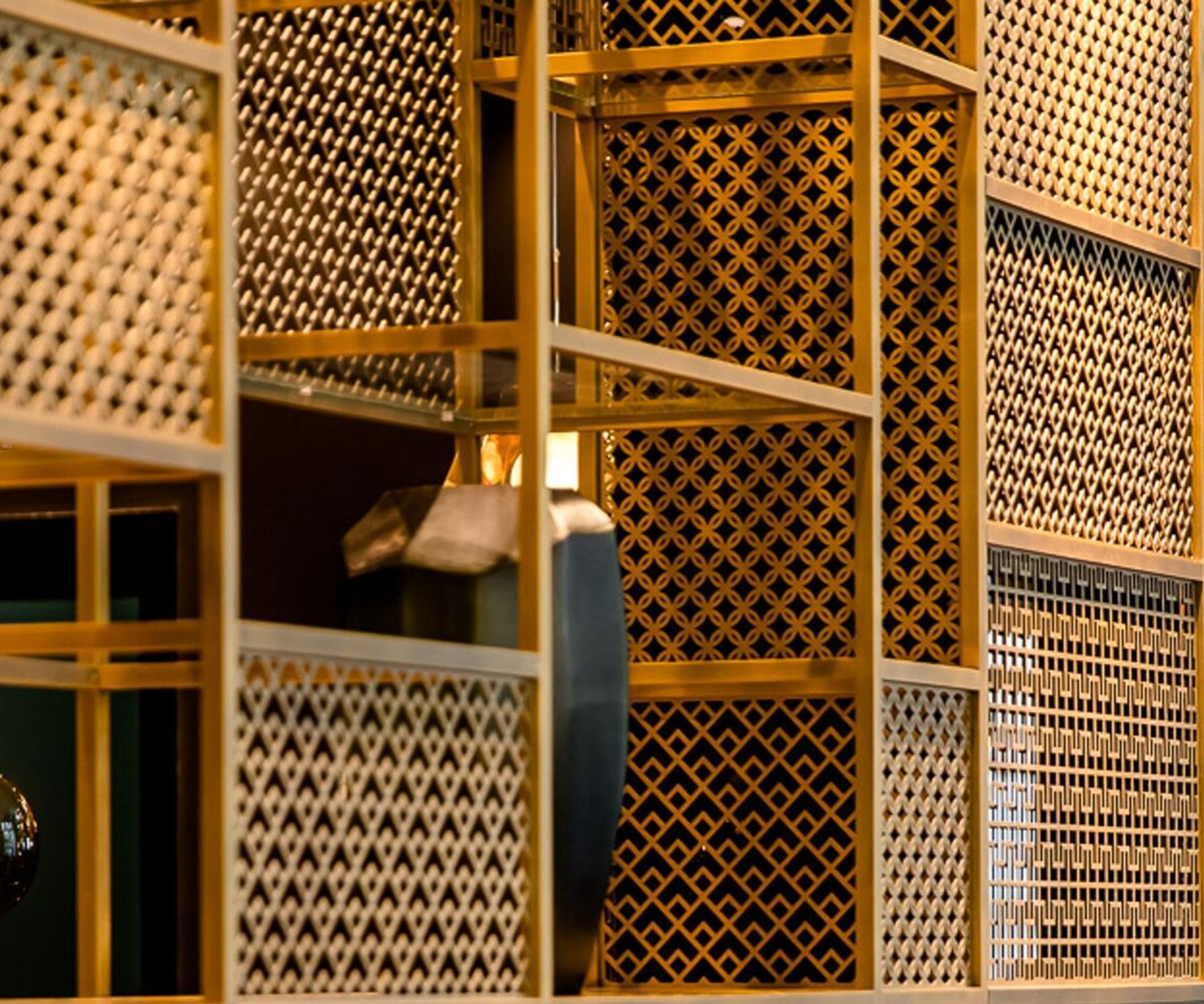 Direkt an der Rezeption beginnt eure Reise durch Aachens royale Vergangenheit – in modernem Gewand. Goldene Details und ein bisschen Prunk dürfen sein. Die Front ist inspiriert von der Brüstung des Aachener Doms. Die Rückwand zeigt den Domumriss und dazu die vielen Namen, die Aachen in seiner internationalen Lage im Dreiländereck so trägt. Monarchisch, aber charmant.