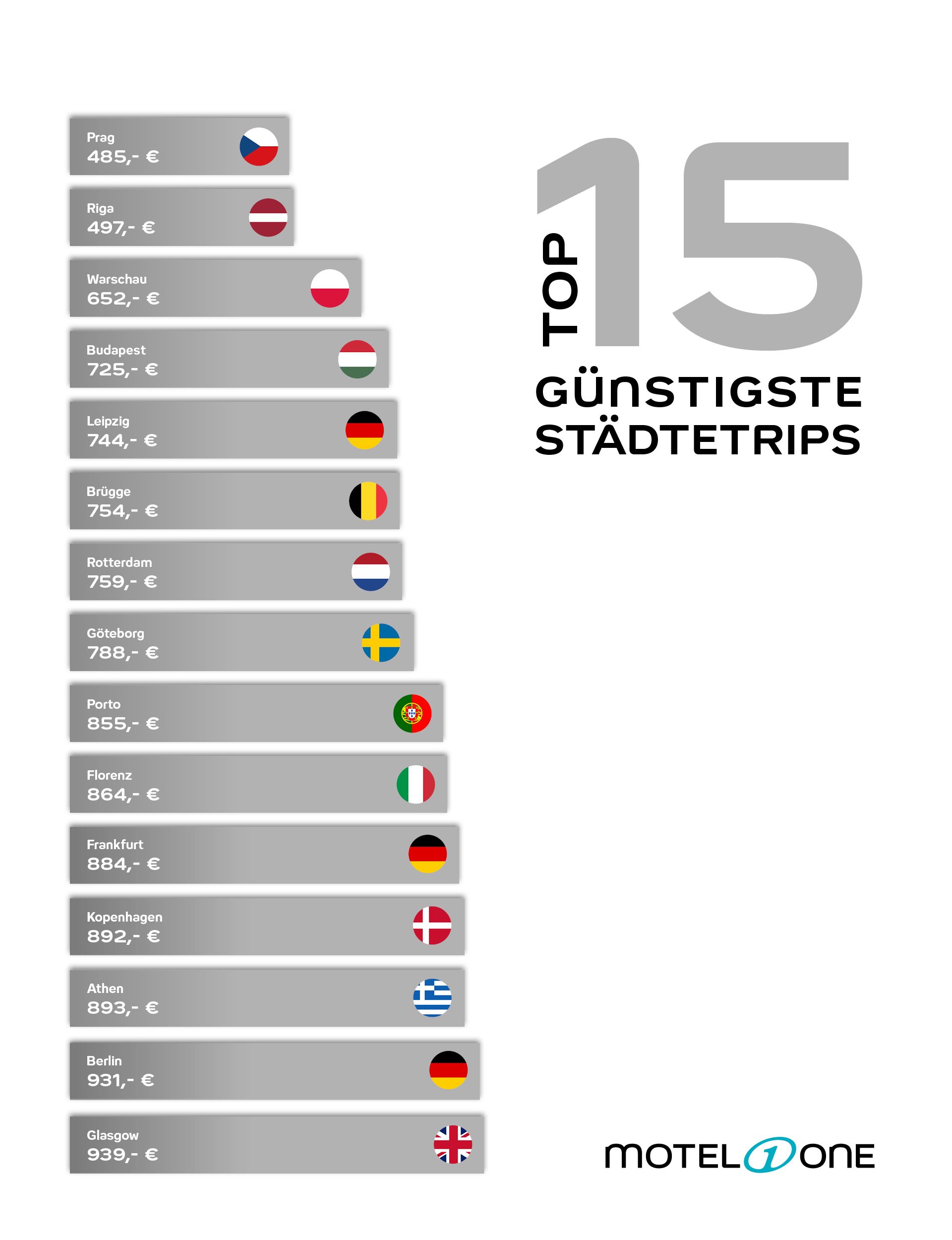 Motel One hat für Sie recherchiert und angesichts steigender Preise eine Studie herausgebracht, die auflistet welche europäischen Städte das beste Preis-Leistungs-Verhältnis für einen viertägigen Städtetrip bieten.