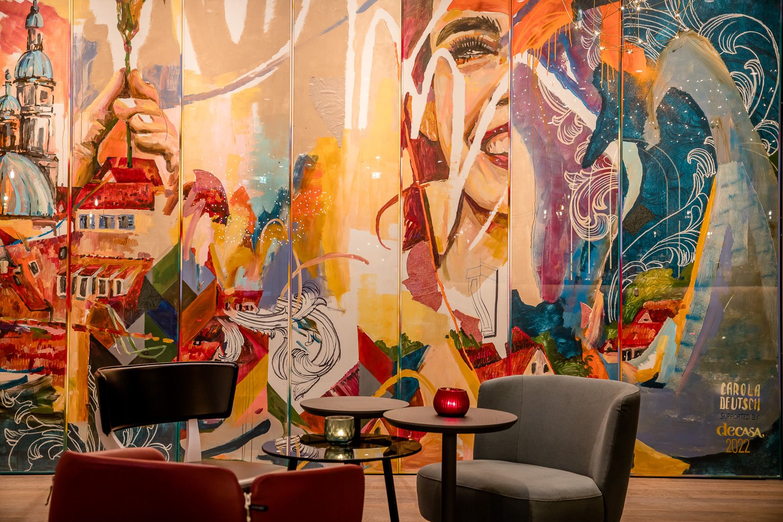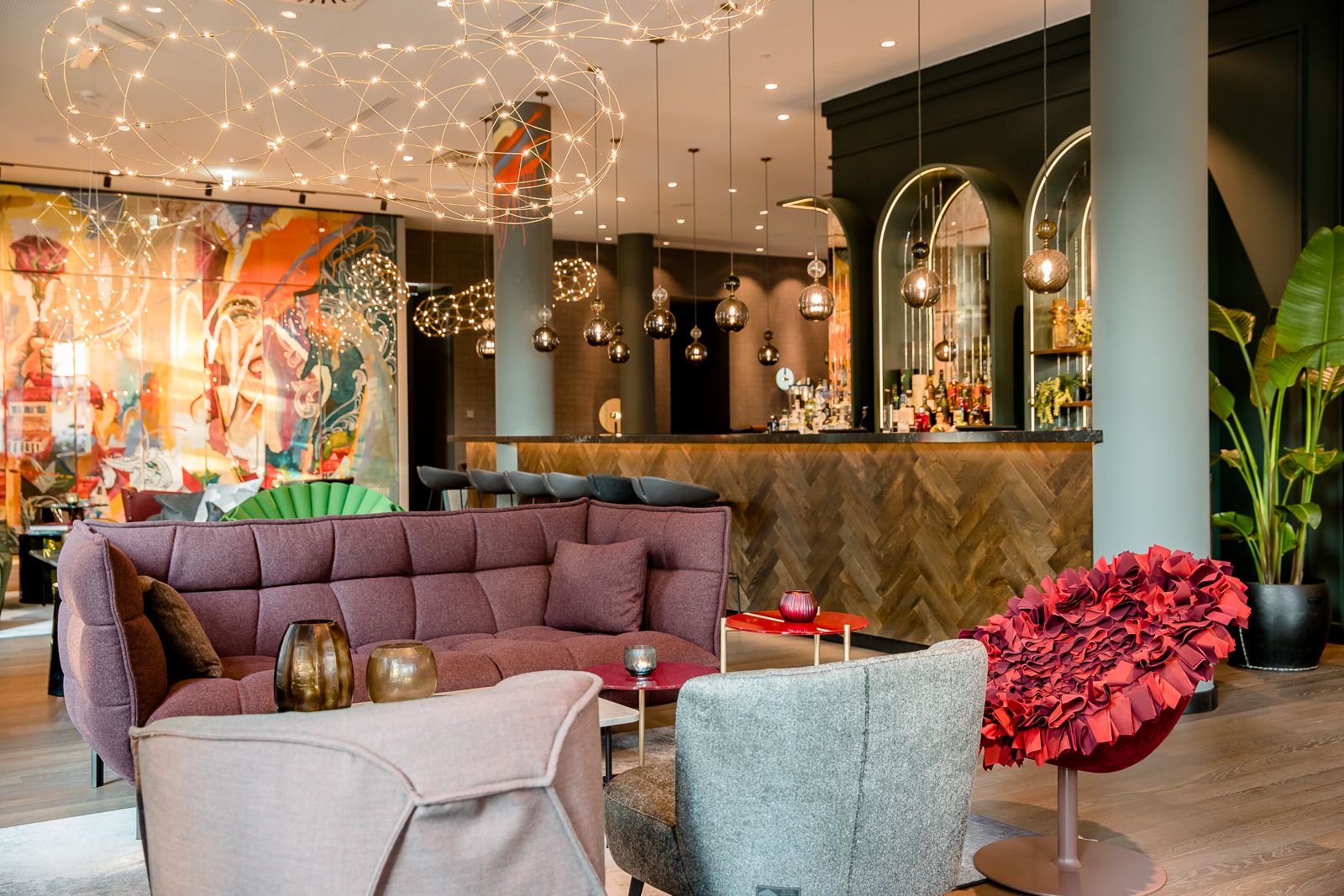 … hat im Motel One Graz besonders die Kunst – aber auch an modernen Sitzgelegenheiten mangelt es nicht.