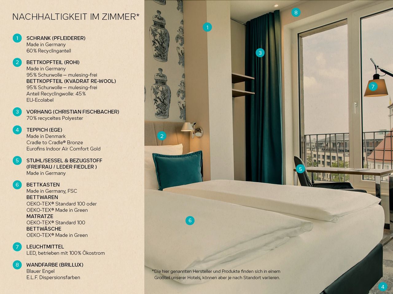 - Kreislaufwirtschaft: Einsatz von Paneelen aus recyceltem Altholz unseres Partners Pfleiderer im neuen Zimmer.