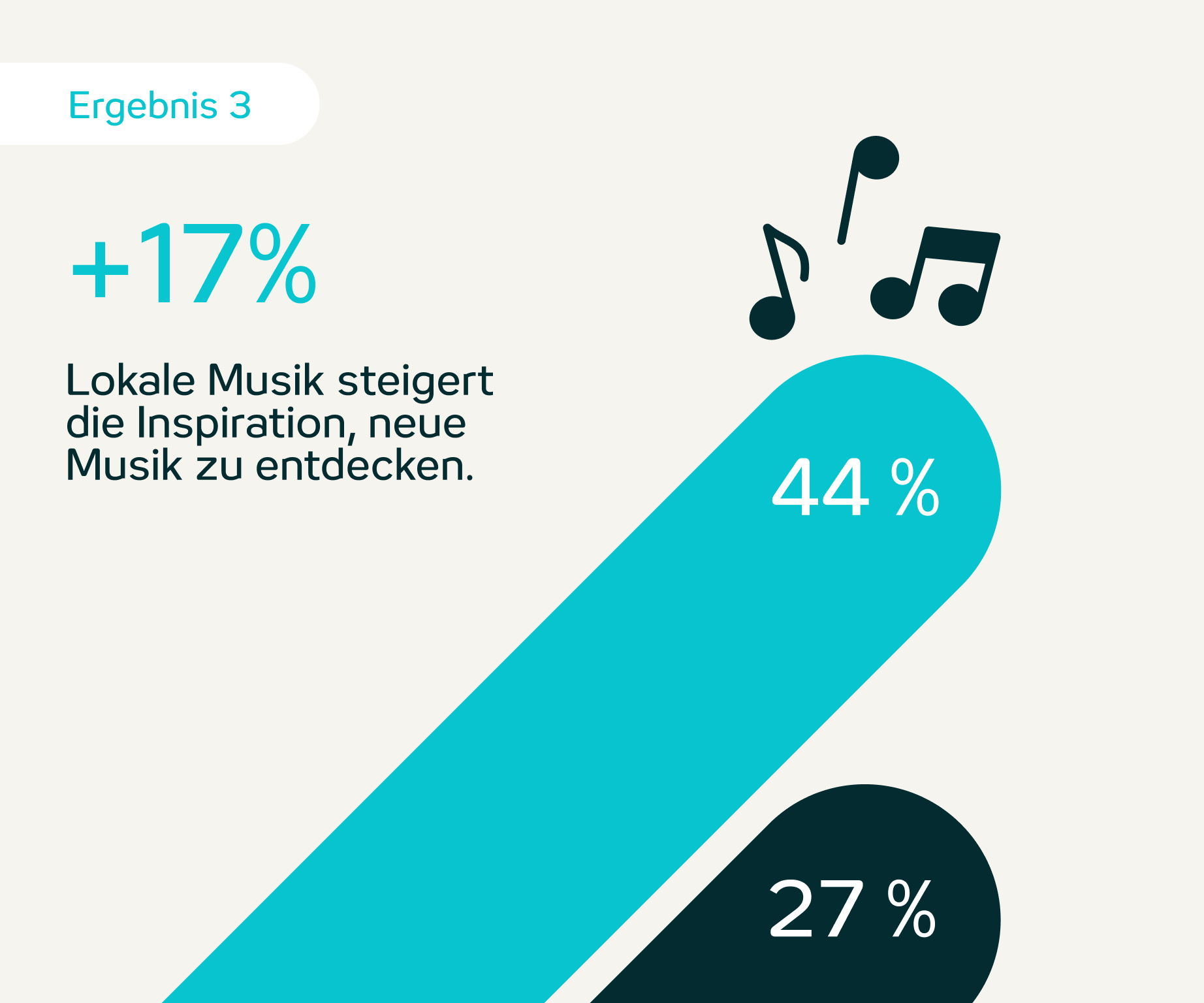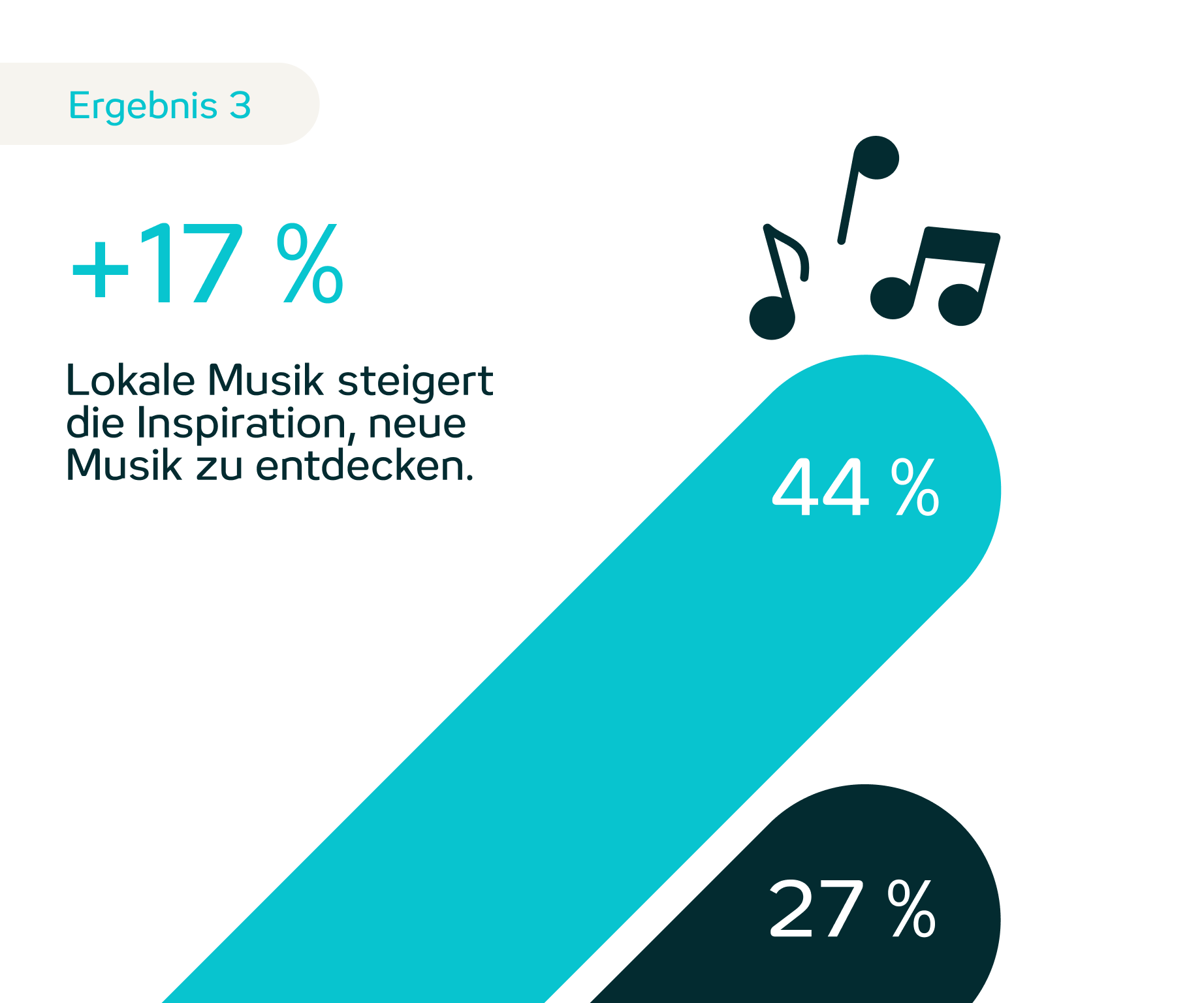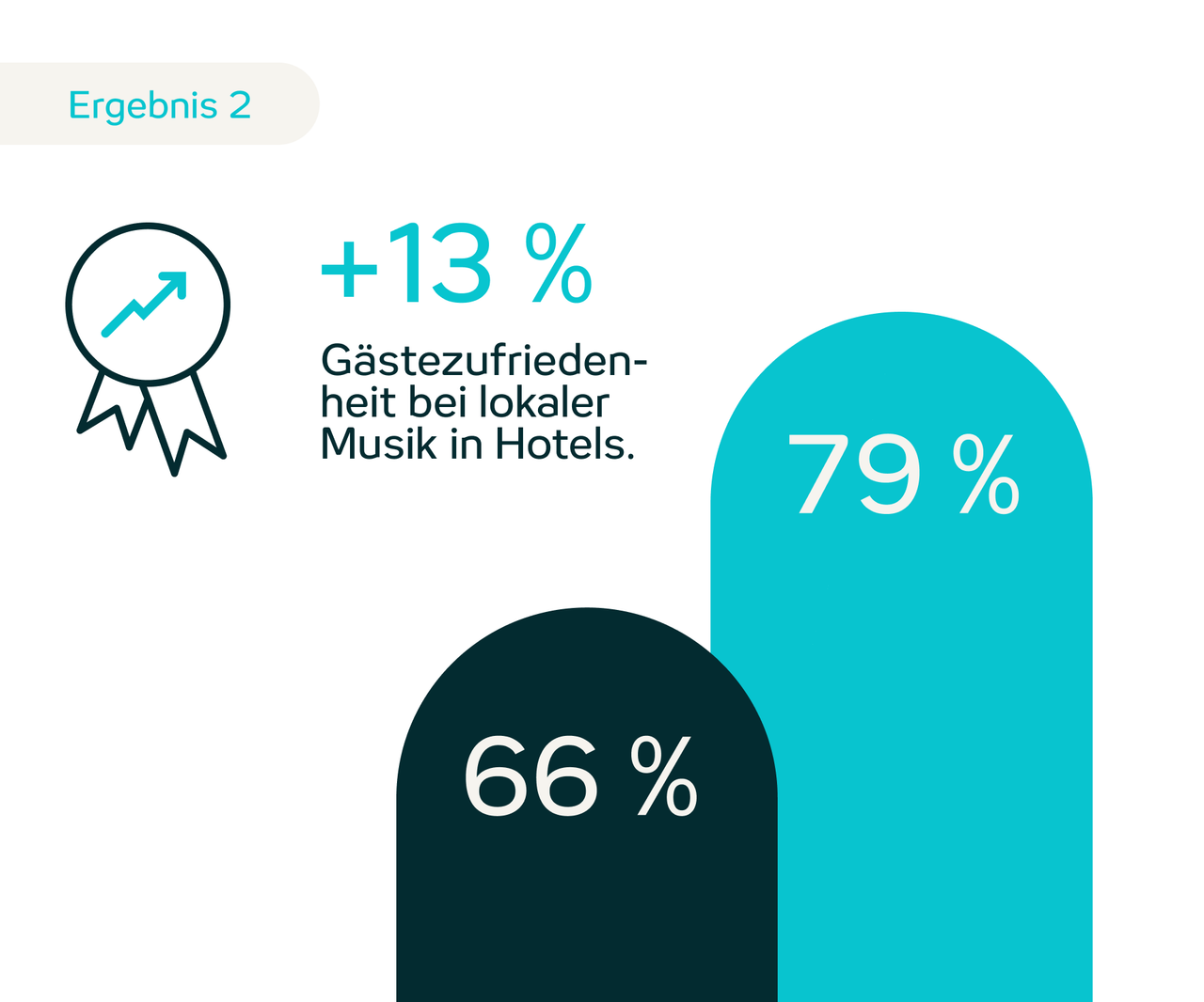 Der Anteil der Gäste mit einem insgesamt guten oder sehr guten Aufenthalt steigt durch lokale Musik um 13 Prozentpunkte. Musik wirkt damit nicht nur atmosphärisch, sondern als Experience-Treiber.