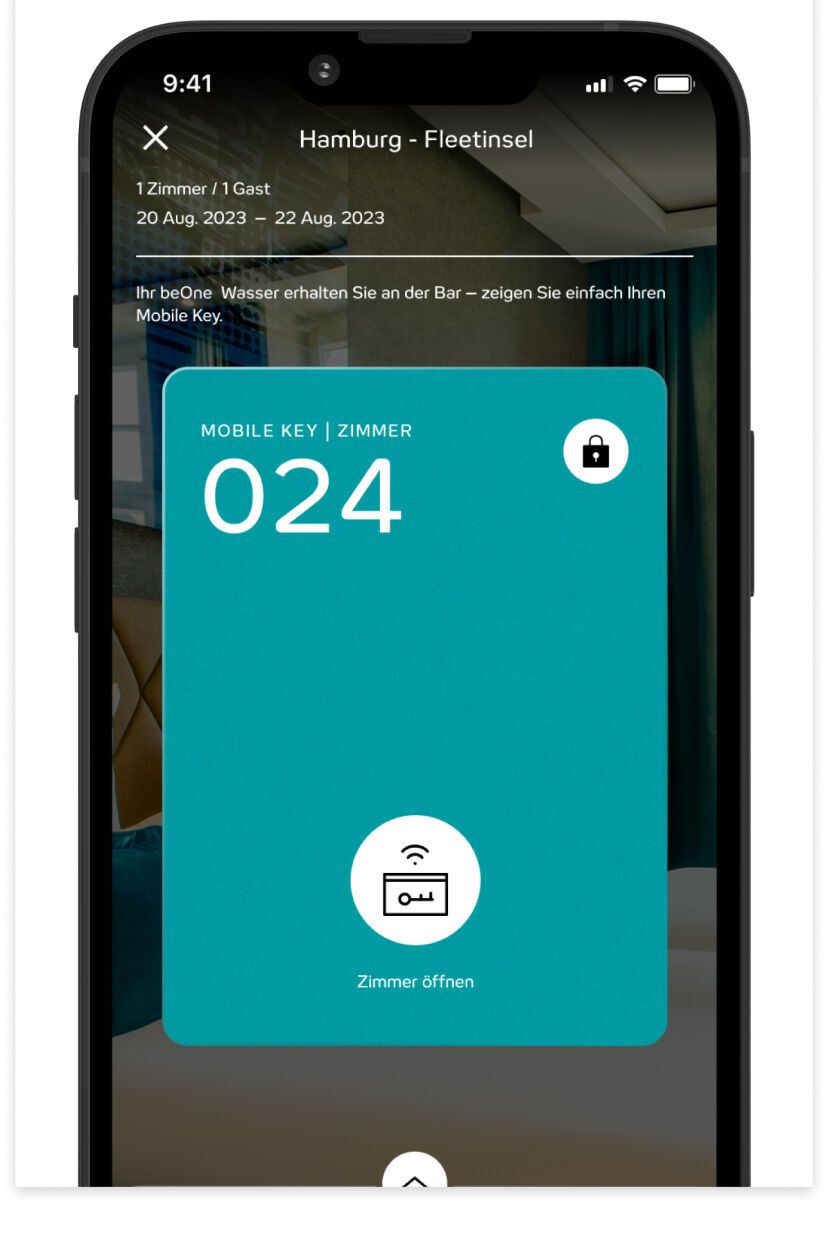 Sofern im Hotel verfügbar, kannst du mit dem Mobile Key deine Zimmertür über die beOne-App öffnen.