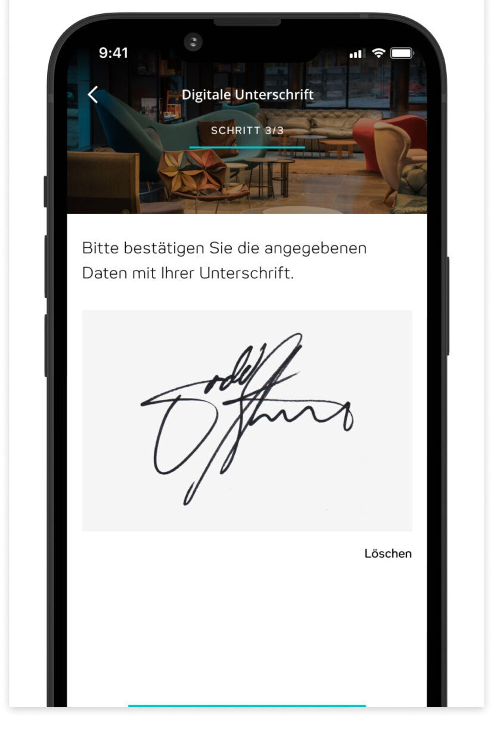 Bestätige deine Angaben mit einer digitalen Unterschrift.