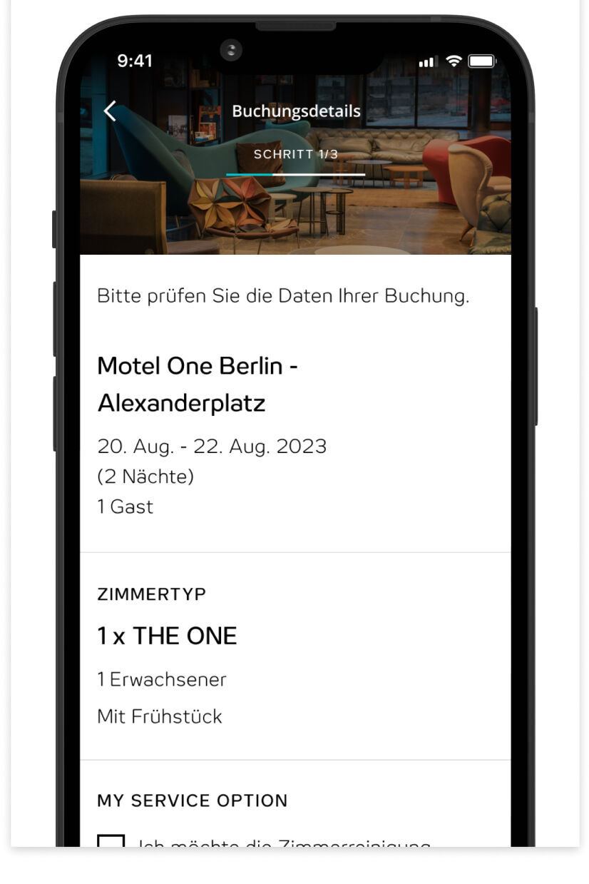 Du hast erfolgreich eingecheckt. Deine Zimmerkarte erhältst du an der Rezeption oder via beOne-App.