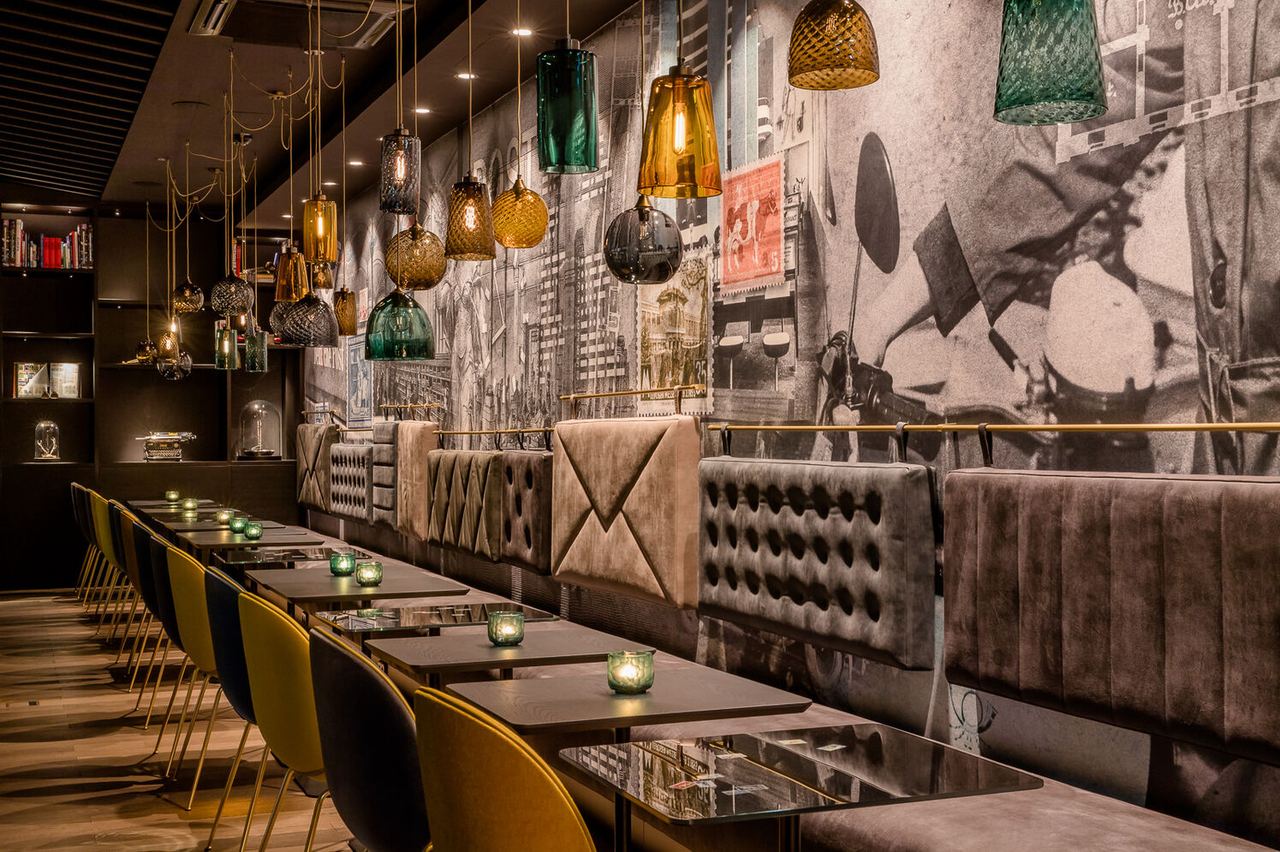 Wie über den Wolken wandelt man in unserer Cloud One Bar, umrahmt von der Skyline Leipzigs. Nicht nur die eigens kreierte Tapete im Luftpost-Look, sondern auch die weichen Designermöbel von Moroso und Baxter verleihen ein geradezu erhebendes Gefühl - das dich auch beim Cocktails mischen in unserer „Mix-it-yourself"-Bar beflügeln wird. Als Kontrast verweisen die digitalen Binärcodes der LED-Wand hinter dem Tresen auf eine modernere Art der Übermittlung von Informationen.
