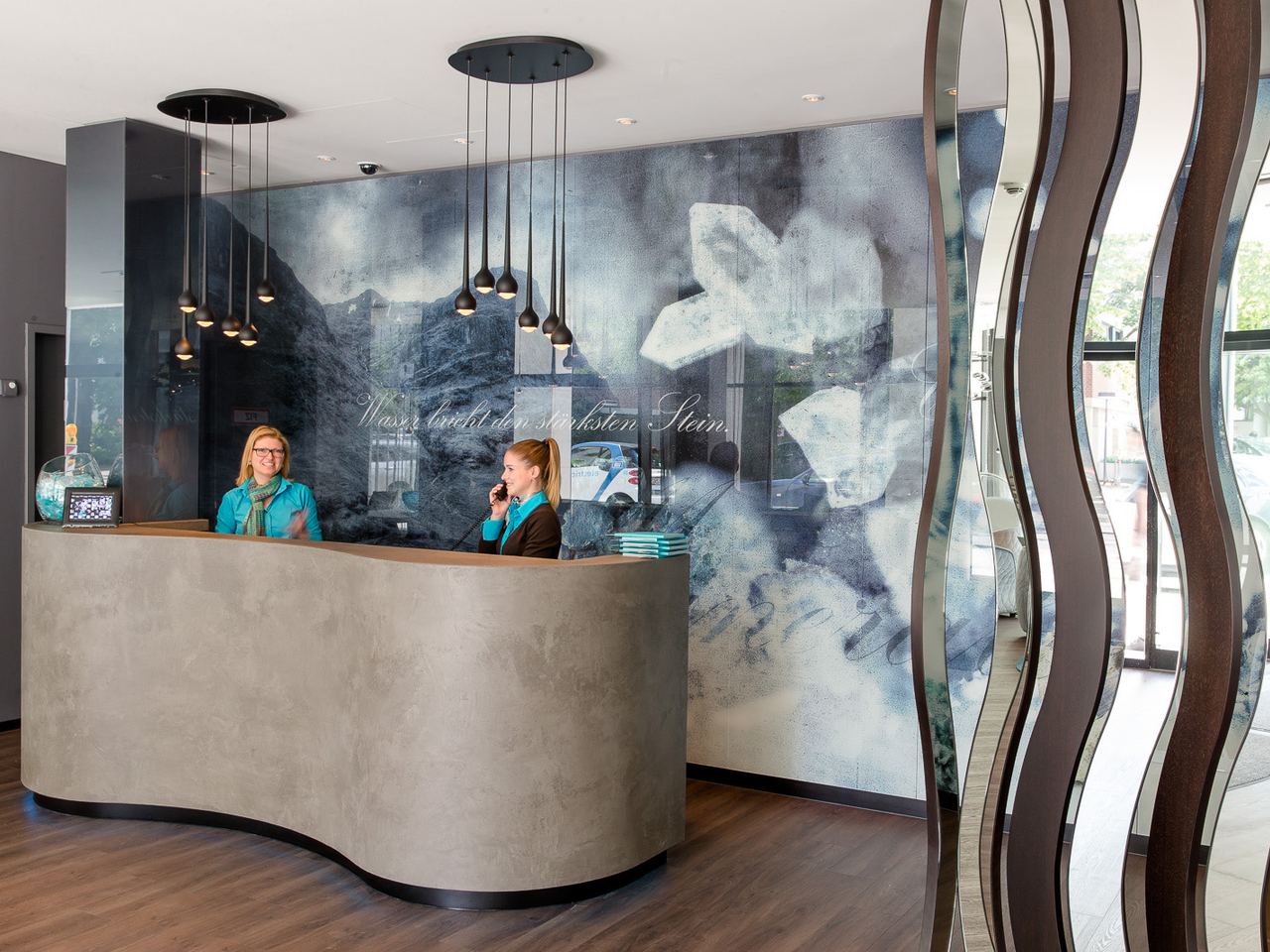 An unserer Motel One Bar aus Naturstein sitzt du direkt an der Quelle. Denn wo Mineralwasser ist, da ist auch Stein. Schließlich entsteht das kostbare Gut erst durch diesen natürlichen Filter.
