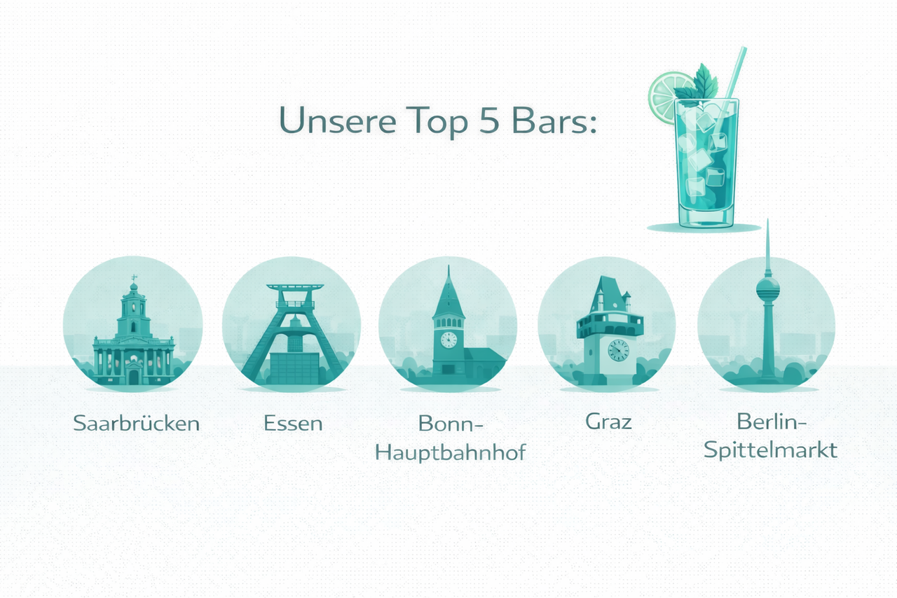 Natürlich sind alle unsere Bars einen Absacker Wert, aber laut eurer Bewertungen, waren diese 5 eure Favoriten!