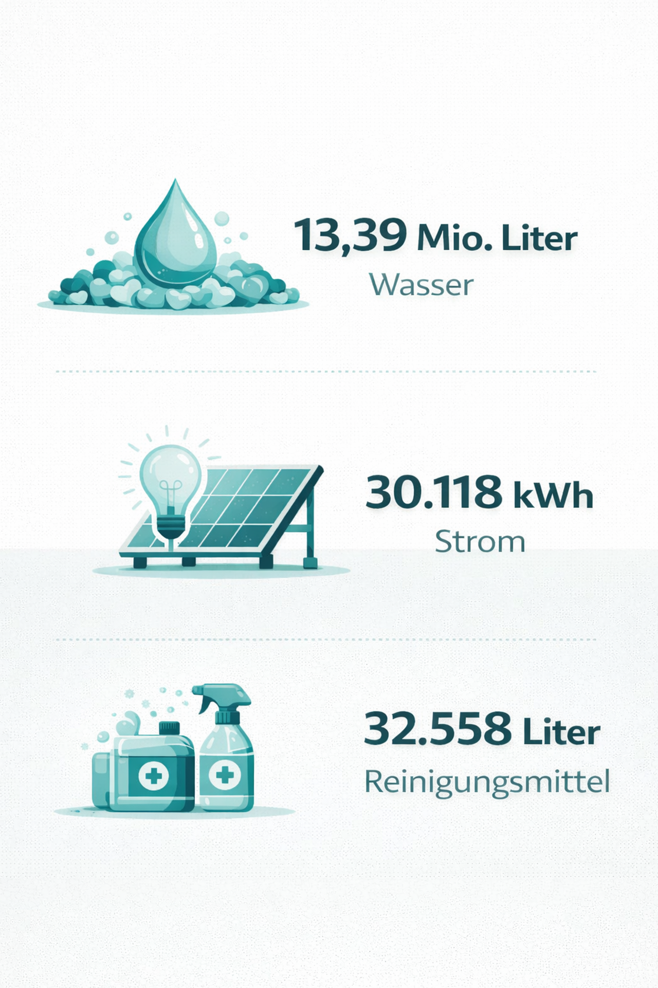 Dank Euch wurden weniger Wasser, Reinigungsmittel und Strom verbraucht.