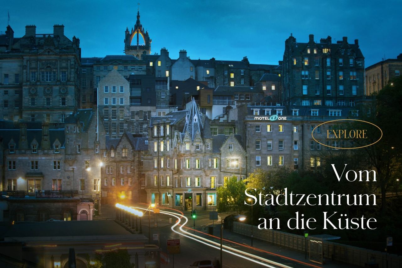 Im Vergleich zu anderen europäischen Hauptstädten ist Edinburgh mit knapp einer halben Million Einwohnern eher unter den kleineren Städten anzusiedeln. Vorteil: Man ist schnell überall und kann sich die Stadt gemütlich bei ausgedehnten Spaziergängen erlaufen. Von den beiden Motel One Häusern direkt im Zentrum der Stadt kannst du fast alle Sehenswürdigkeiten fußläufig erreichen. Sowohl das Motel One Edinburgh-Royal als auch das Motel One Edinburgh-Princes eignen sich perfekt als Ausgangspunkt für eine spannende Tour durch die schottische Hauptstadt - oder für einen Ausflug ans Meer!