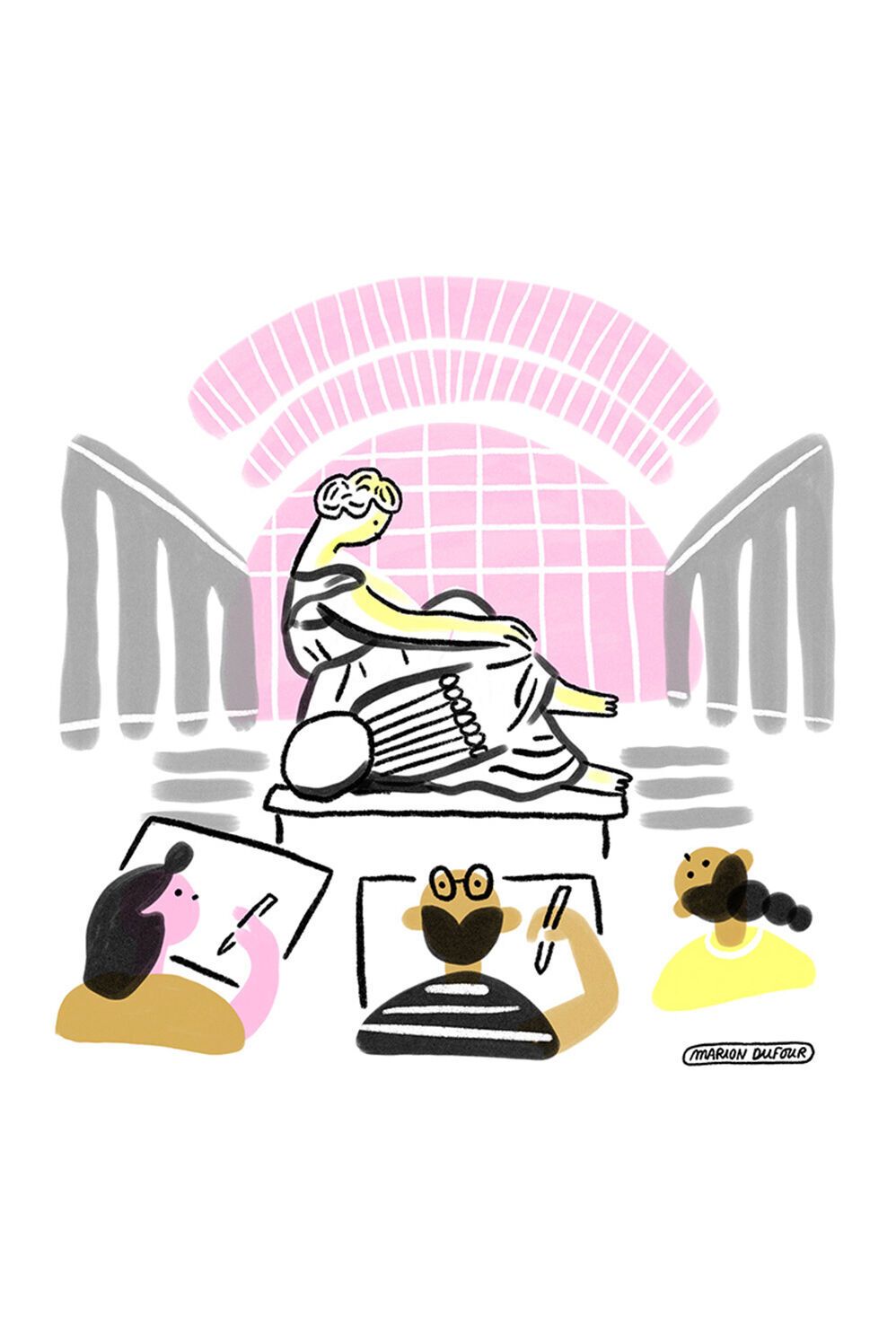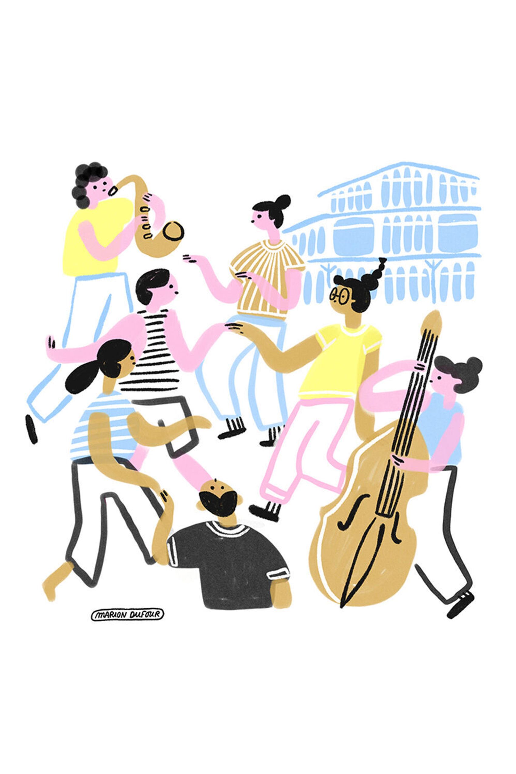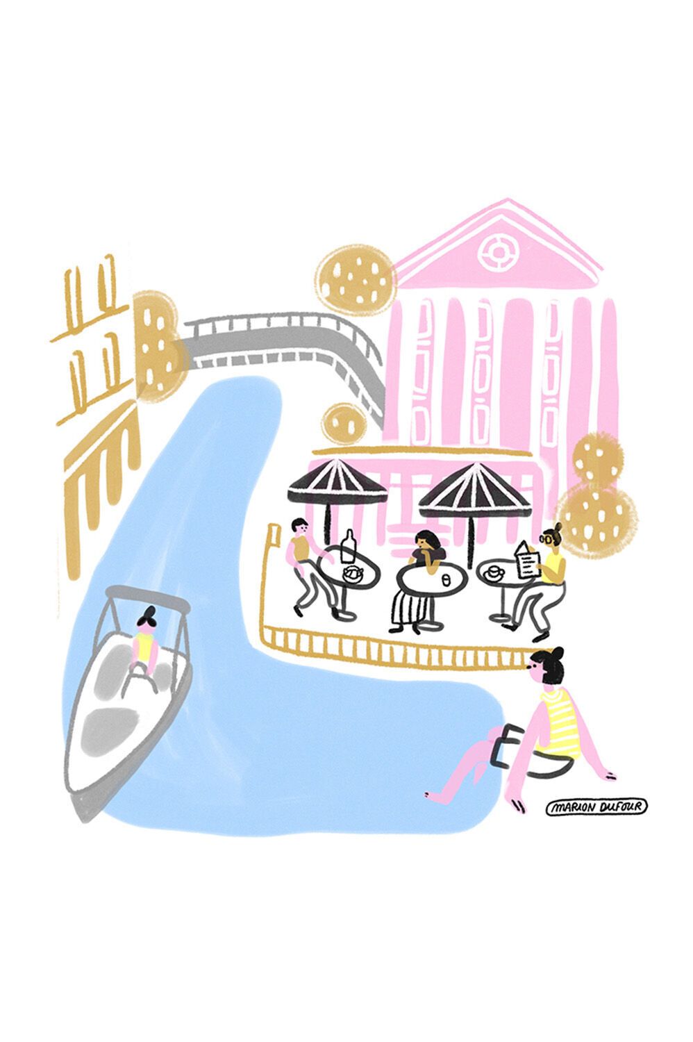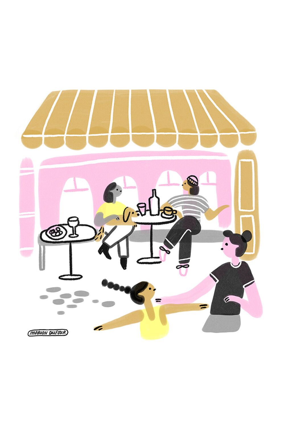 Marion Dufour lebt in Paris und ist Illustratorin sowie Grafikdesignerin. Für die Lounge und die Meetingräume in unserem Motel One Paris-Porte de Versailles hat sie eine Serie von Illustrationen entworfen: schwarz-weiß Bilder. die auf poetische und humorvolle Weise Szenen aus dem Alltag der Hauptstadt Frankreichs erzählen. Kleine typische Momente des Pariser Lebens von morgens bis abends, angefangen beim Croissant, über das Flanieren im Park bis hin zu Gesprächen beim Sonnenuntergang.