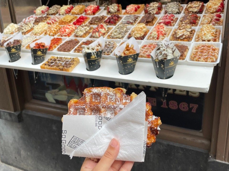 In Richtung Stadtzentrum findet man in der Nähe des berühmten Manneken Pis das „Le Funambule". In diesem symbolträchtigen Brüsseler Waffelladen habe ich selbst schonmal vier Jahre lang gejobbt. Es gibt einfache Waffeln mit Zucker - aber auch üppigere Varianten! Bei einem Besuch in Brüssel sollte man diese belgische Spezialität auf jeden Fall probieren.