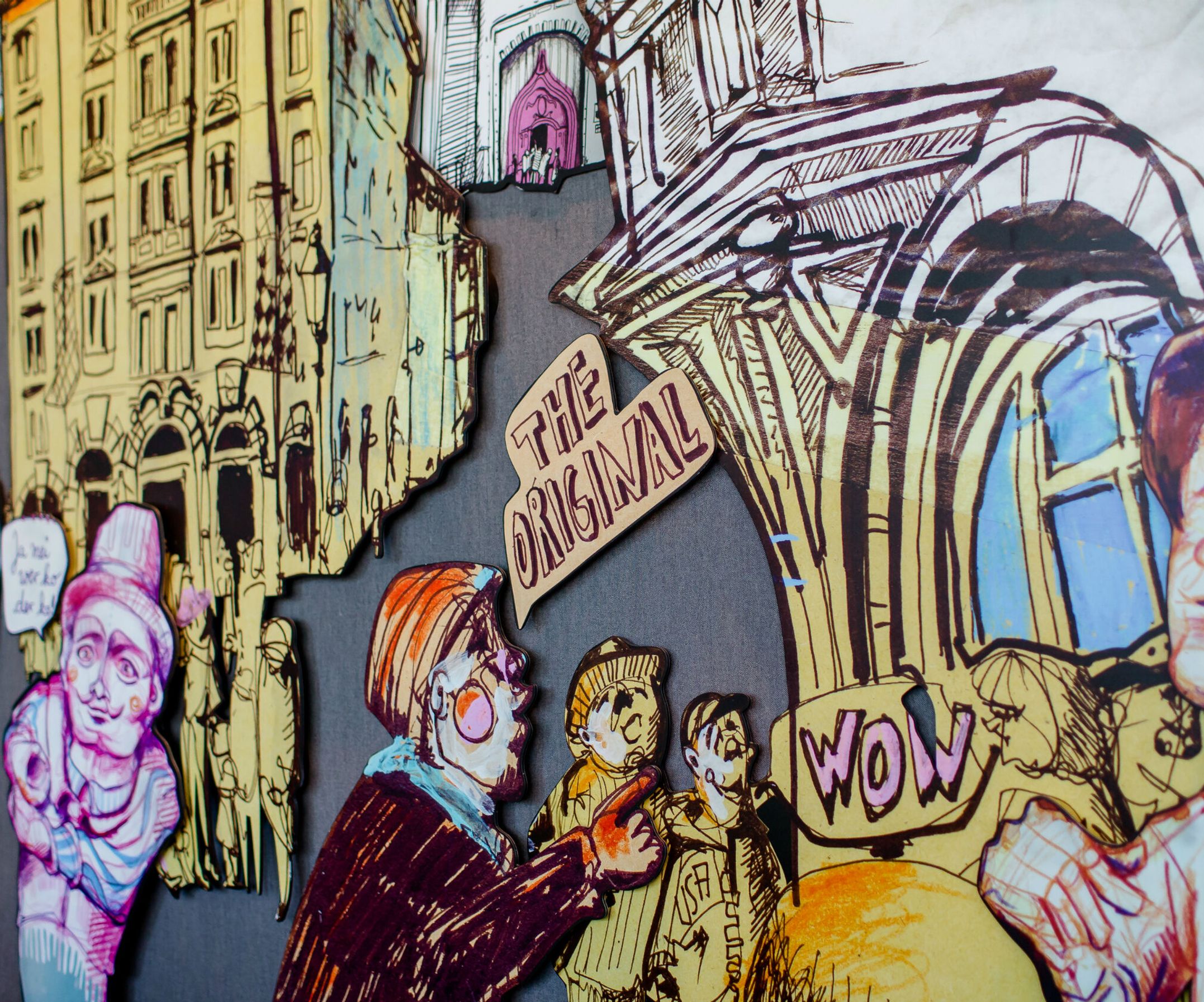 Am Anfang die lustvolle Qual der Wahl: Was soll, was kann, was will ich unbedingt erfasst haben. Zwei Jahre habe ich mich durch München gezeichnet, die Stadt mit all ihren Facetten ergründet. Aus den über 200 Zeichnungen – gesammelt im vorab entstandenen Reiseführer – Wandinstallationen für das Motel One zu kreieren, war dann ein komplett anderer, aber nicht weniger herausfordernder schöpferischer Prozess. Artworks in unterschiedlichsten Zeichenstilen, Farbigkeiten und Größen, dazu noch thematisch gegliedert. All das zu ausgewogenen und inspirierenden Kompositionen miteinander zu verweben … da qualmten die Synapsen.