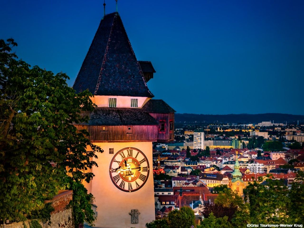 In Graz ticken die Uhren ein bisschen anders. Sichtbar wird das hoch über den Dächern der Stadt: Dort thront seit dem 16. Jahrhundert der Grazer Uhrturm auf dem Schlossberg. Mit seinem mittelalterlichen Baukern aus dem 13. Jahrhundert ist er eines der ältesten Gebäude der Grazer Festungsanlage. Beim Blick auf das Ziffernblatt kann man schon mal ins Grübeln kommen. Denn Stunden- und Minutenzeiger sind hier „vertauscht“. Der Grund: Erst im Laufe der Zeit kam zur großen, gut in der Stadt lesbaren Stundenanzeige ein zweites, innenliegendes Minutenziffernblatt hinzu. Das deutlich kleiner war. Seitdem sorgt der Stundenzeiger für Verwirrung – und prüfende Blicke auf die eigene Armbanduhr.
