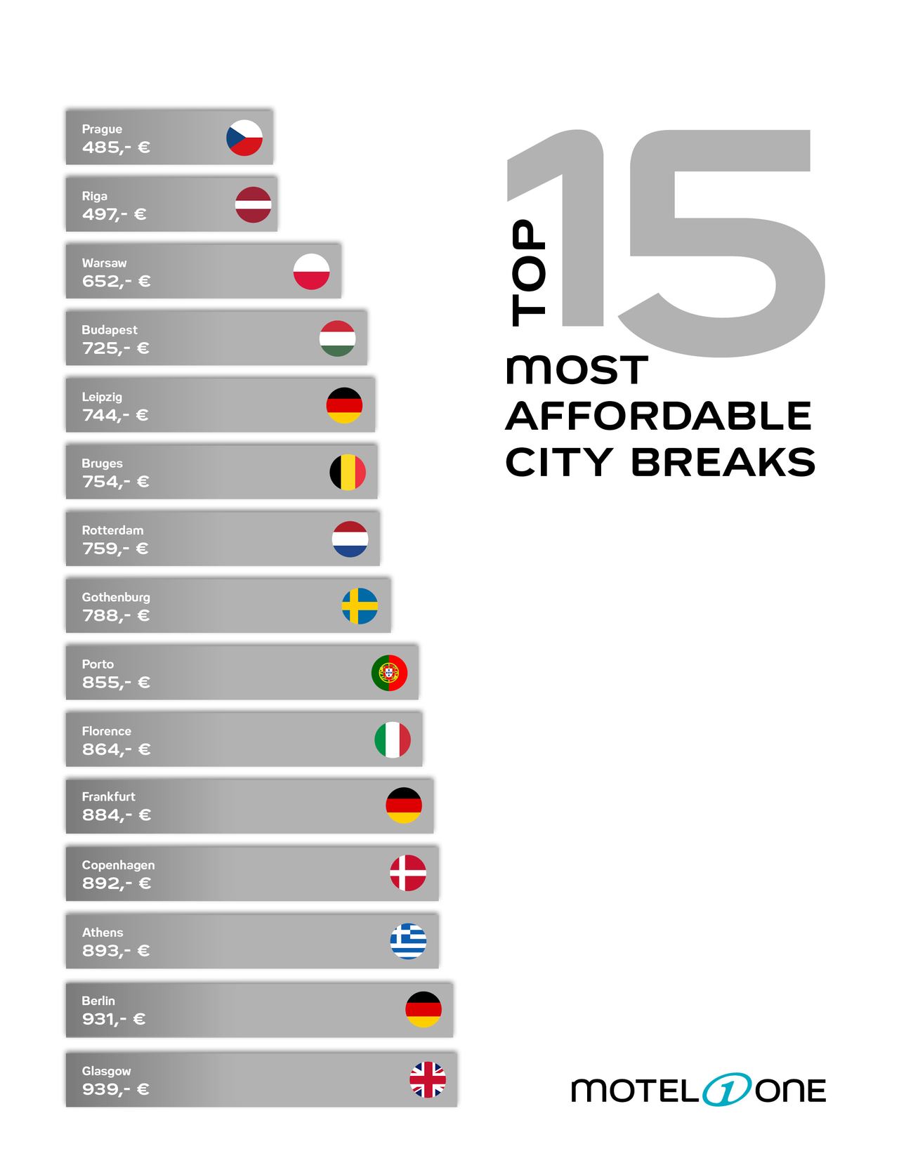 Motel One has done the hard work and ranked the most affordable city breaks across Europe – by searching and ranking currently trending destinations by value for money. Discover which city has the most to offer for a little budget and where your hard-earned vacation money will go the furthest.