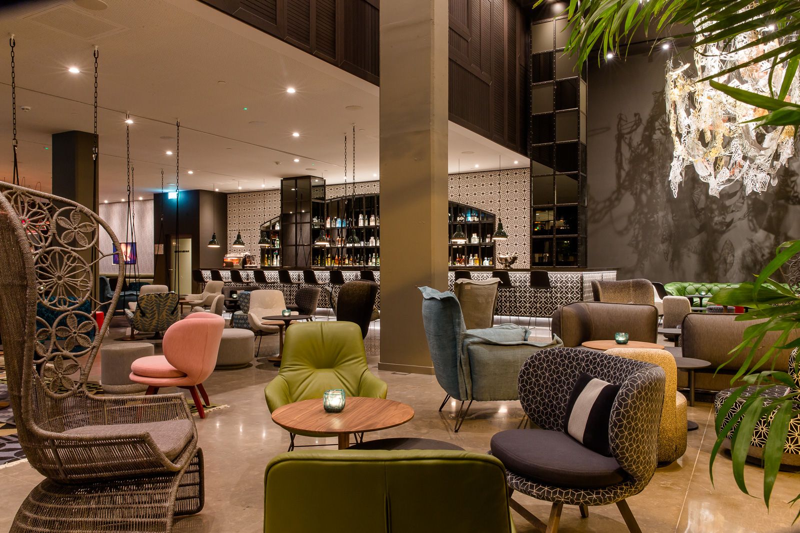 At our Motel One Barcelona-Ciutadella, we combine typical Spanish architecture with locally manufactured designer furniture and the natural influences of the surrounding flora and fauna. The result is enough to make you forget you just came to stay the night! From the reception with its classic cement tiles to the comfy chairs by Spanish designer Patricia Urquiola and the carpets by the local company Nanimarquina, the hotel is full of inspiration from the nature of the nearby park. Pendant lights by Bocci are reminiscent of a bunch of flowers, the natural Spanish stone floor adds a rustic touch and a large outdoor area with lounge invites you to sit back and relax.