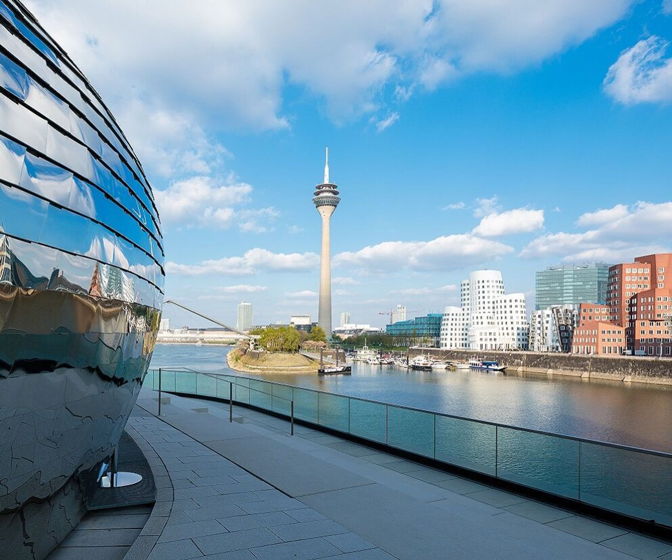 After your shopping spree, head to the Rhine promenade for some well-earned relaxation. Lined with cafés, bars and restaurants, the most famous boulevard of the state capital embodies the Rhenish joie de vivre. Right by the promenade, the architecturally impressive “MedienHafen” (media harbour) exudes aged industrial charm paired with the atmosphere of a Mediterranean port.