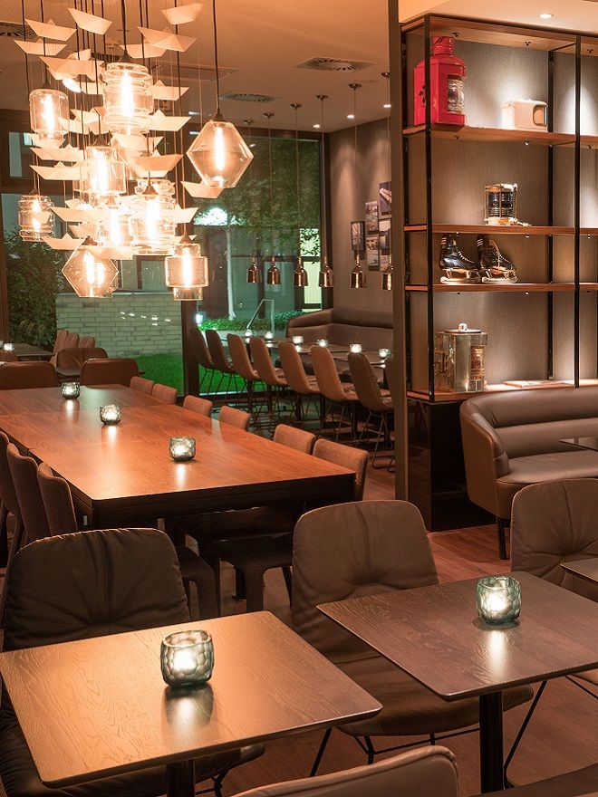 Our design hotel at Hamburg's famous landmark “Michel” reflects on the special connection the Beatles have with our Hanseatic City. The Fab Four played their first major concerts at Star-Club on Große Freiheit, and the original lettering in our Starclub Bar pays tribute to this claim to fame. What the Beatles are to music, we endeavour to be to design. Model ships and ship lights, a photographic collage featuring aerial views of the port of Hamburg and pendant lights made from old pulleys characterise the maritime design of our Motel Hamburg am Michel. Some of the most important sights of the city are located within walking distance of our hotel: the Reeperbahn, the port and the floating dock (Landungsbrücken).