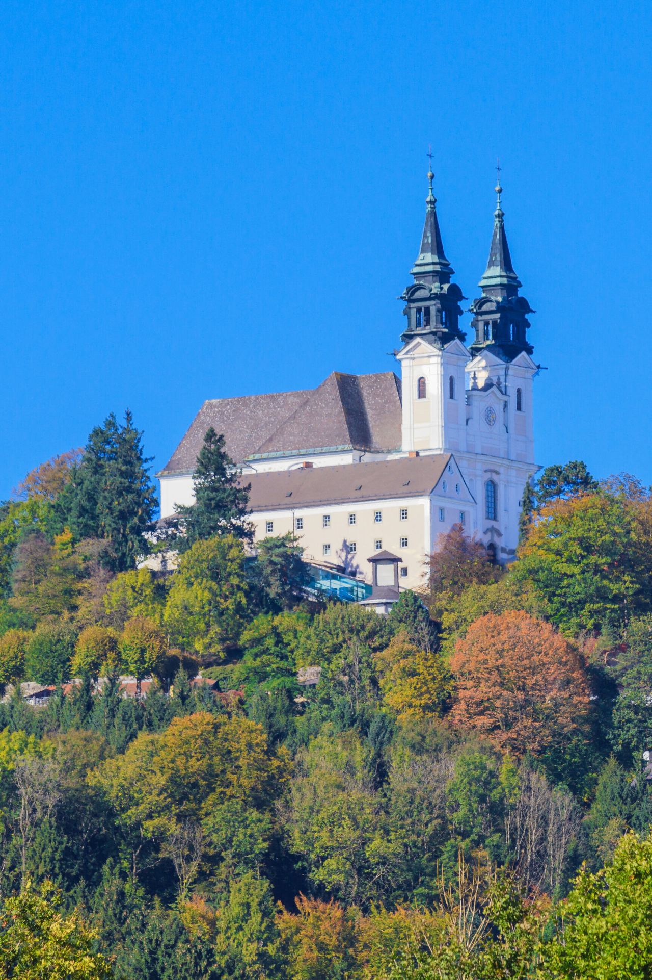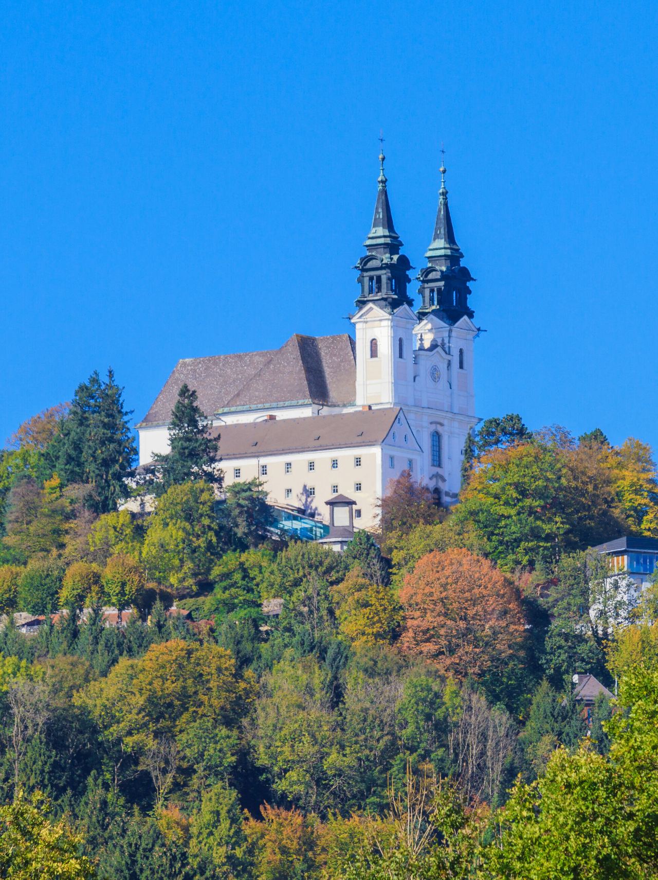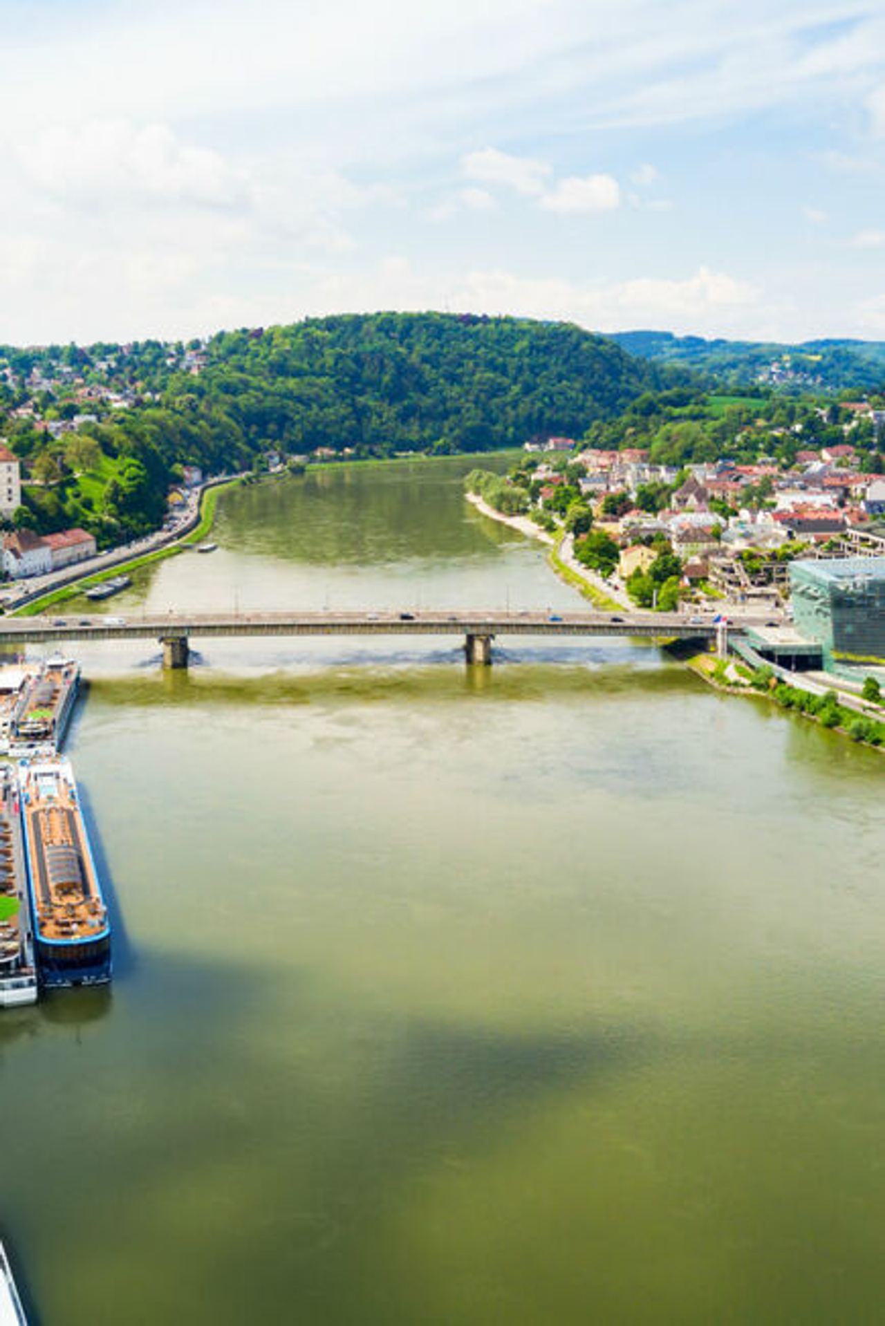 Linz’s local mountain, the Pöstlingberg, is situated on the northern bank of the Danube. You can climb its 539 metres on foot – or conveniently ride to the top with the Pöstlingbergbahn mountain tramway. This popular outing destination not only offers the best views of Linz and its surroundings – it also brings together several sites to one place. Here you’ll find the Zoo Linz, where you can get a closer look at both local and exotic fauna. Younger visitors will especially enjoy the Grottenbahn, which takes children on a fantastical journey through the realm of fairy tales and dwarves. A historically treasured recreational ride, this beloved attraction is more than 100 years old. Halfway up the mountain is the Anton Bruckner Private University for music, theatre and dance, named after the prominent composer that worked as a cathedral and parish organist in Linz. Inside, you can enjoy concerts and performances, but the stunning slat-covered building is worth a visit for its exterior architecture alone. Once you reach the peak, you’ll see another symbol of Linz up close: the Pöstlingberg Church, dedicated to the ‘Seven Sorrows of the Virgin Mary’. With two towers in subtle pink and white, the church finished construction in 1748 and can be reached from the viewing platform in a few minutes.