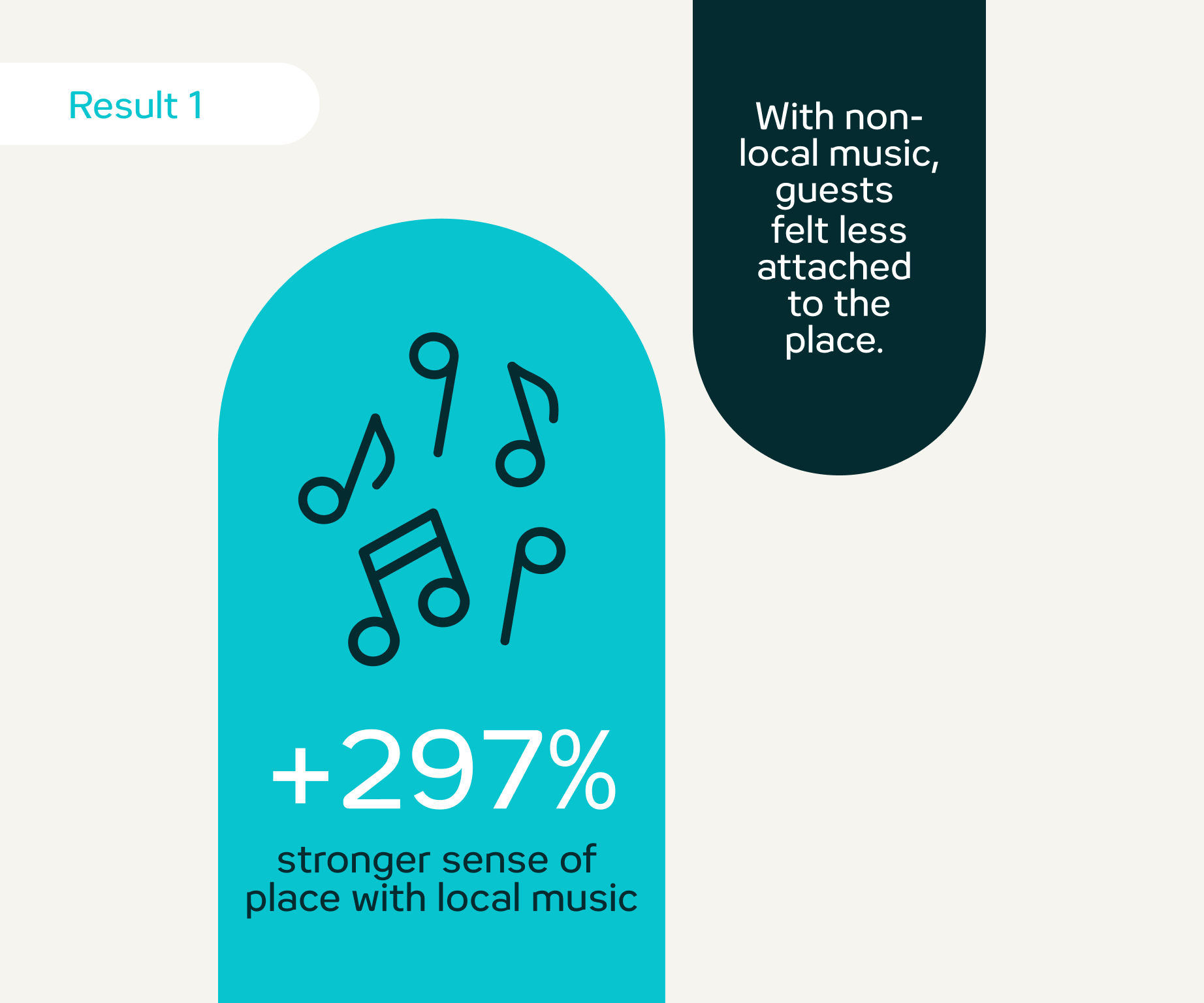 Guests who listened to local playlists were almost three times as likely to feel connected to their location as guests who listened to non-local playlists. Local music thus measurably increases the feeling of arrival.