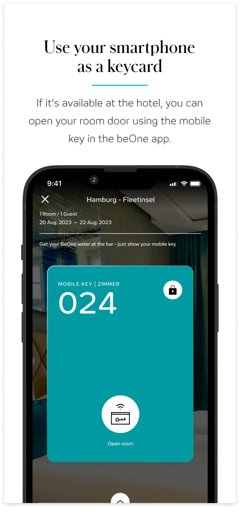 As a beOne Member, you can easily and flexibly check in online – wherever you’re staying. But that’s not all: in selected Motel One hotels, you can also open the room door using a mobile key on your smartphone.