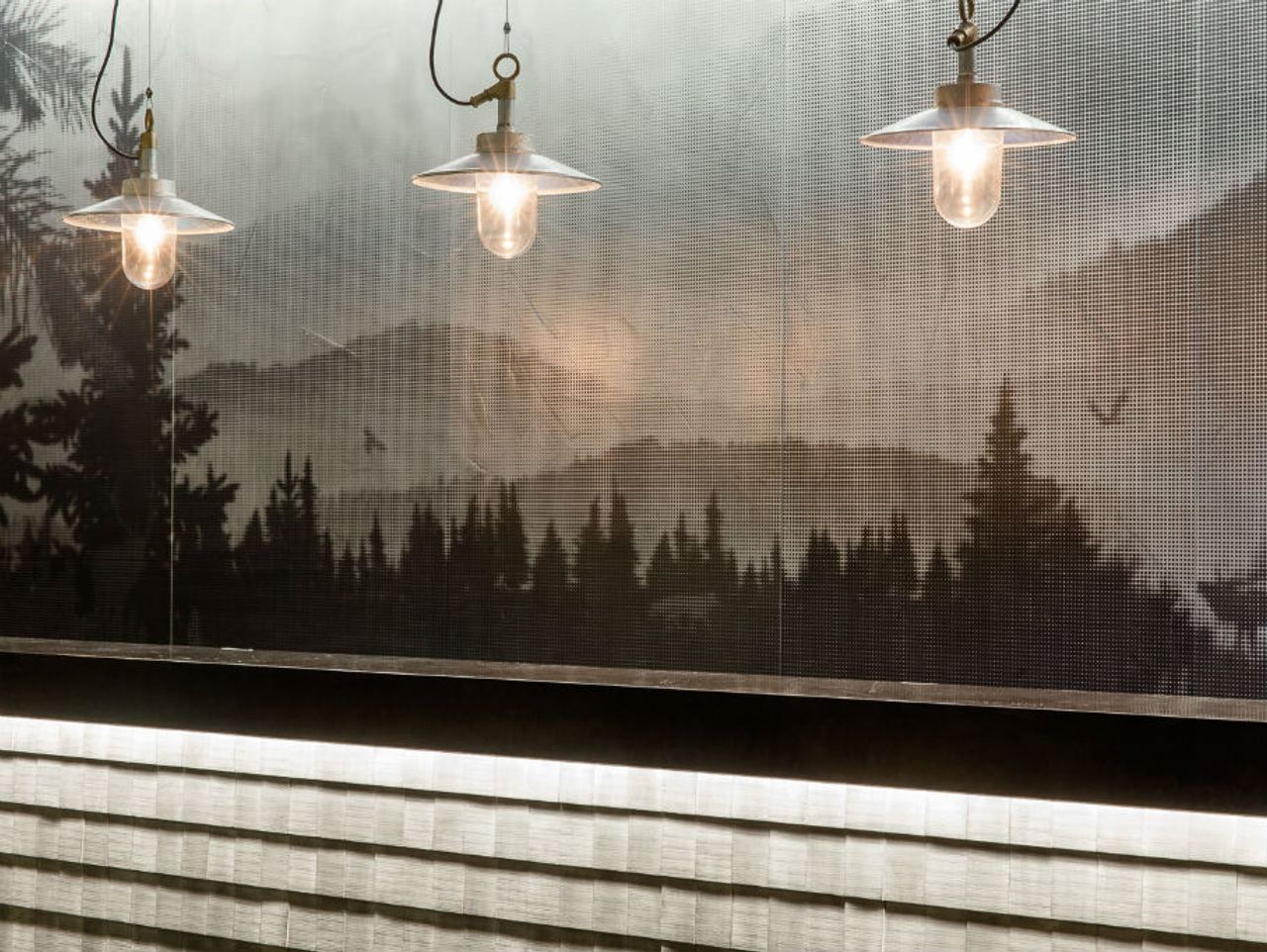 You are immersed in the mystical atmosphere of the Black Forest from the moment you enter the reception area. The floor, made of oil shale, and the silver-coated back wall of the reception play with two natural resources that helped to shape the region. A classic landscape motif, depicted in abstract as a pointillist artwork, provides a wonderful representation of the local Freiburg mountains – complete with roaring stag – without descending into kitsch.