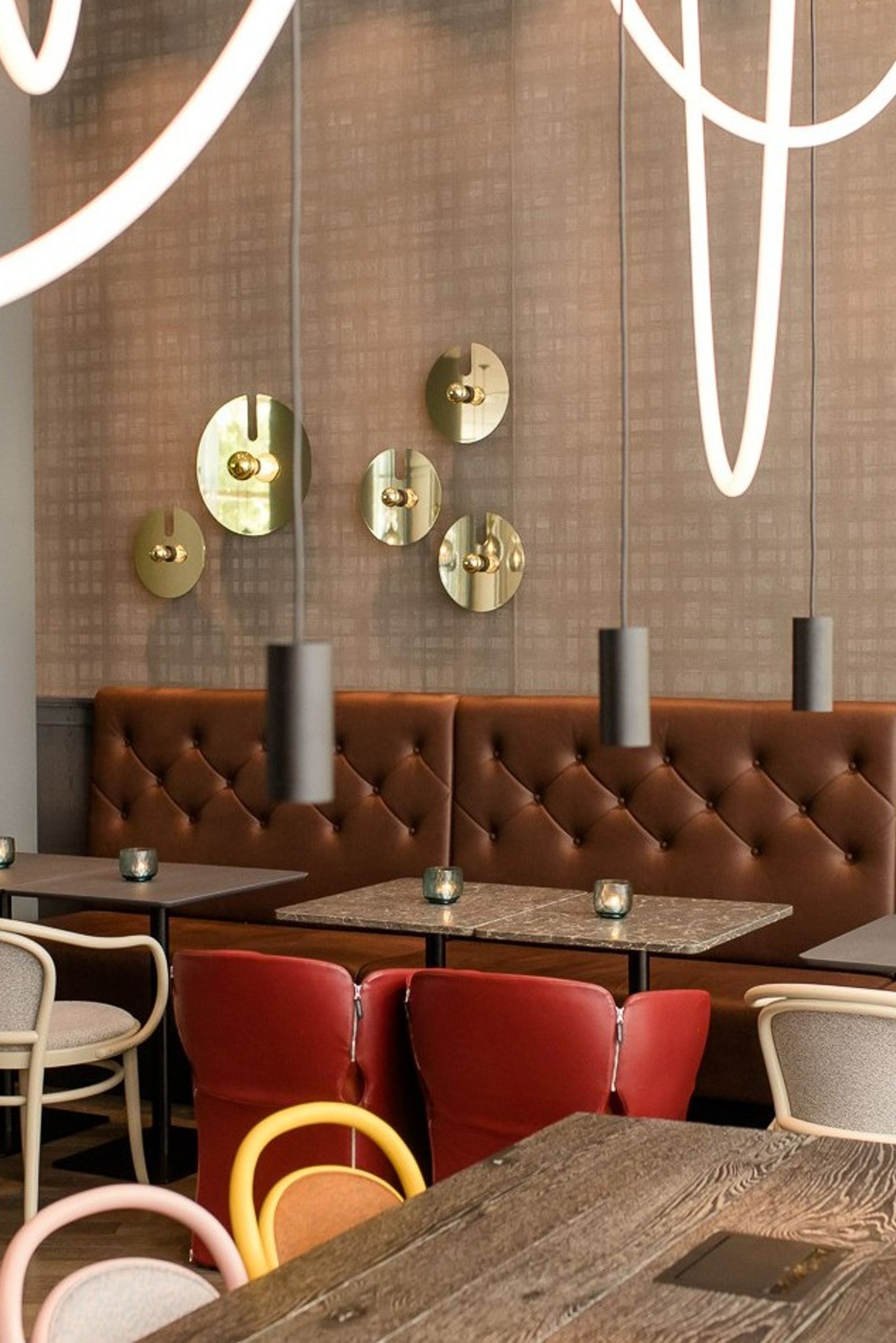 The reminiscences of its former elegance are played out primarily through architectural features. Stucco decorations, wallpaper patterns or the traditional herringbone parquet flooring on the reception and bar counter front skilfully pick up style elements of the past without appearing dusty.