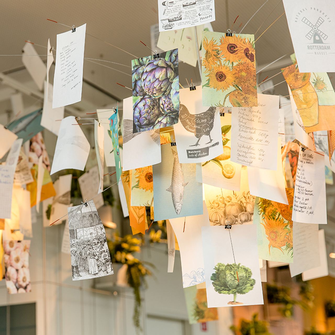 As soon as you step into the lobby, your eyes will be drawn to the floor-to-ceiling shelving made from steel cables and plant boxes. It imitates the architectural details of the market hall’s façade, while the bright displays of the market stalls are abstractly represented by the colourful background.