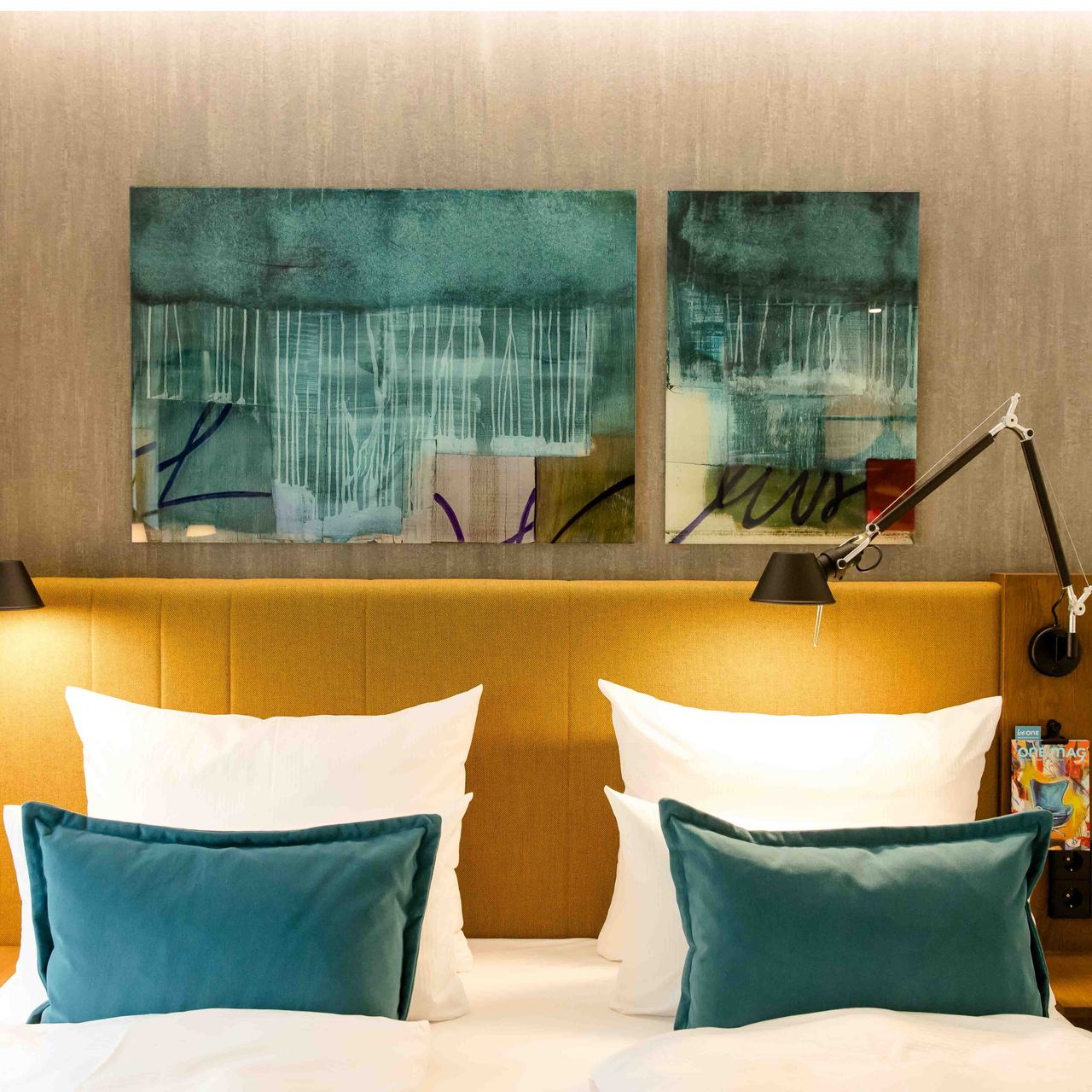 To round off the day, there’s only one thing left to do: help yourself to a portion of restful sleep in your own residence. Art by Jaroslav Drazil continues in the rooms and radiates a special sense of calm with its soft colours. Green is the shade of harmony – so there’s nothing standing in the way of a pleasant night.