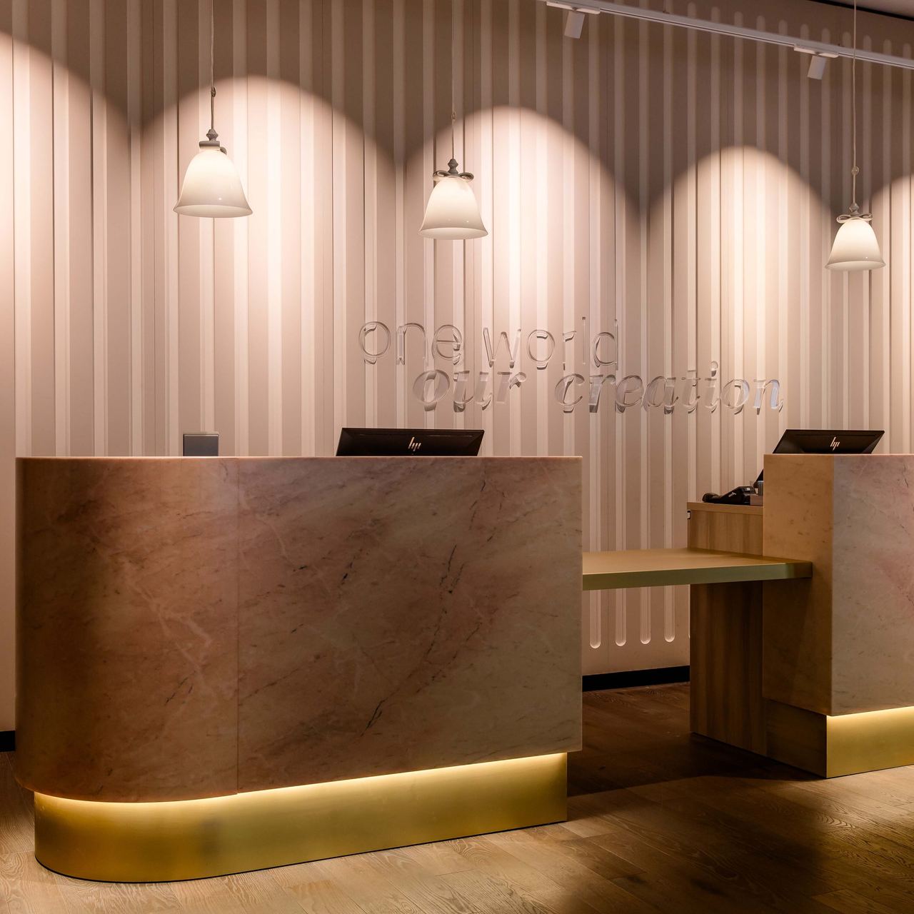 When you enter the lobby, you will immediately notice these words at reception. They are a link to the symbolism of the ceiling fresco in the Würzburg Residence, which depicts the peaceful coexistence of the four continents of the time under the heaven of the gods. The message is clear: every peace-loving person is welcome at Motel One!