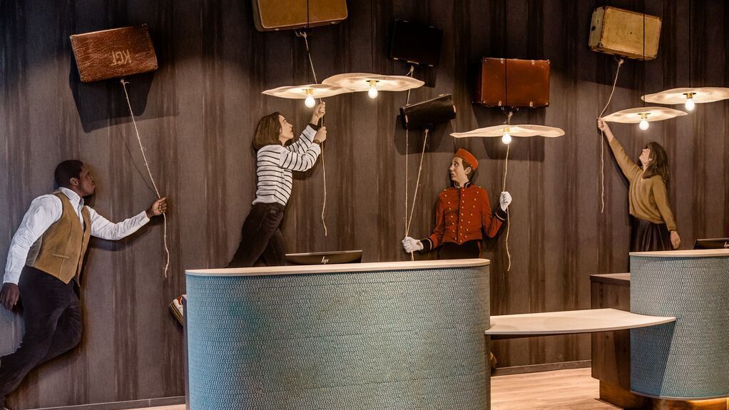Charles' work is primarily a mixture of drawing and installation. He stages his ink-drawn figures in public spaces, creating a visual and semantic dialogue with their surroundings. The figures interact with the architecture and unfold in situations that often border on the absurd. Here at Motel One Paris-Porte de Versailles, they certainly add that certain “je ne sais quoi”!