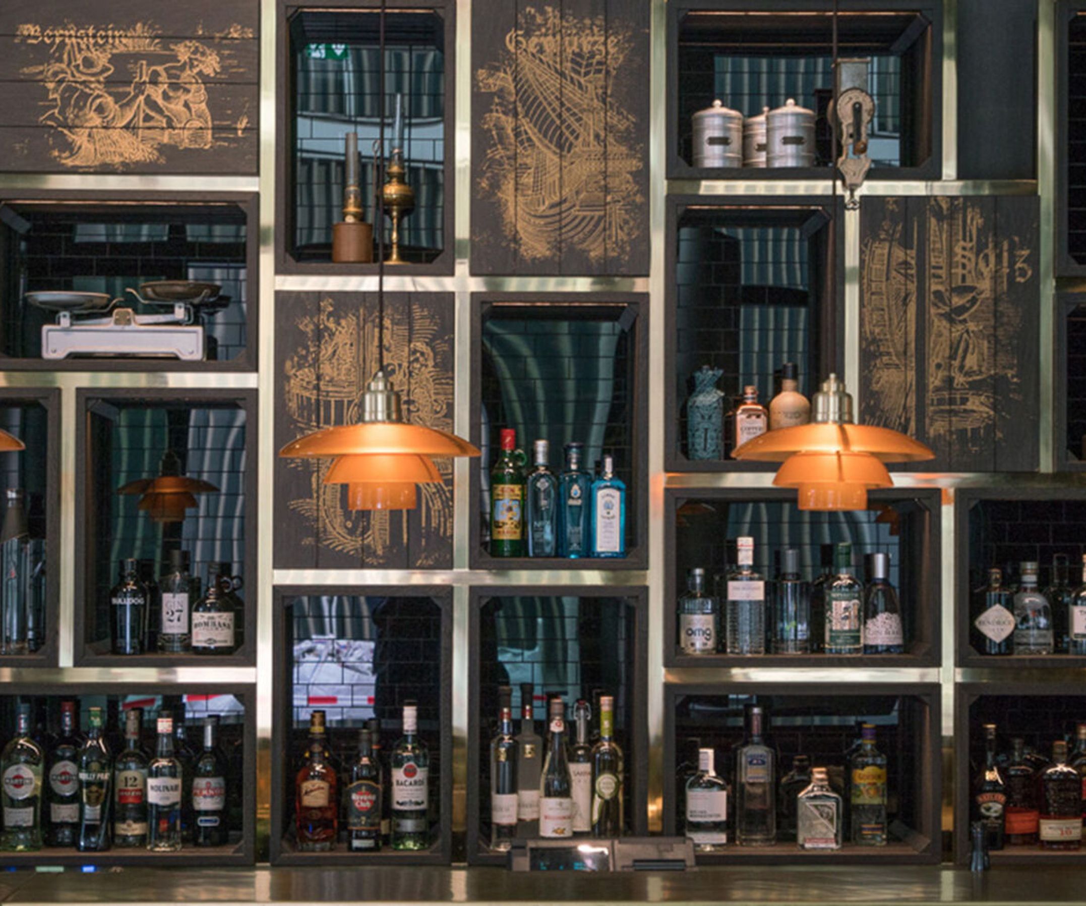 The 165 canals have always played a major role in Amsterdam. And besides hopping on a boat there is no better way of getting around than by bike. At our One Lounge we have done our fair share to include the city's favorite means of transportation into our design. An installation made of old tire rims (which have entered a new life cycle so to speak - pardon the pun) adorns the wall and an abstract room divider made of bike parts is quite the eye-catcher. Which however, should not distract you from making your way to our fabulous bar that awaits you with an excellent collection of drinks and snacks.