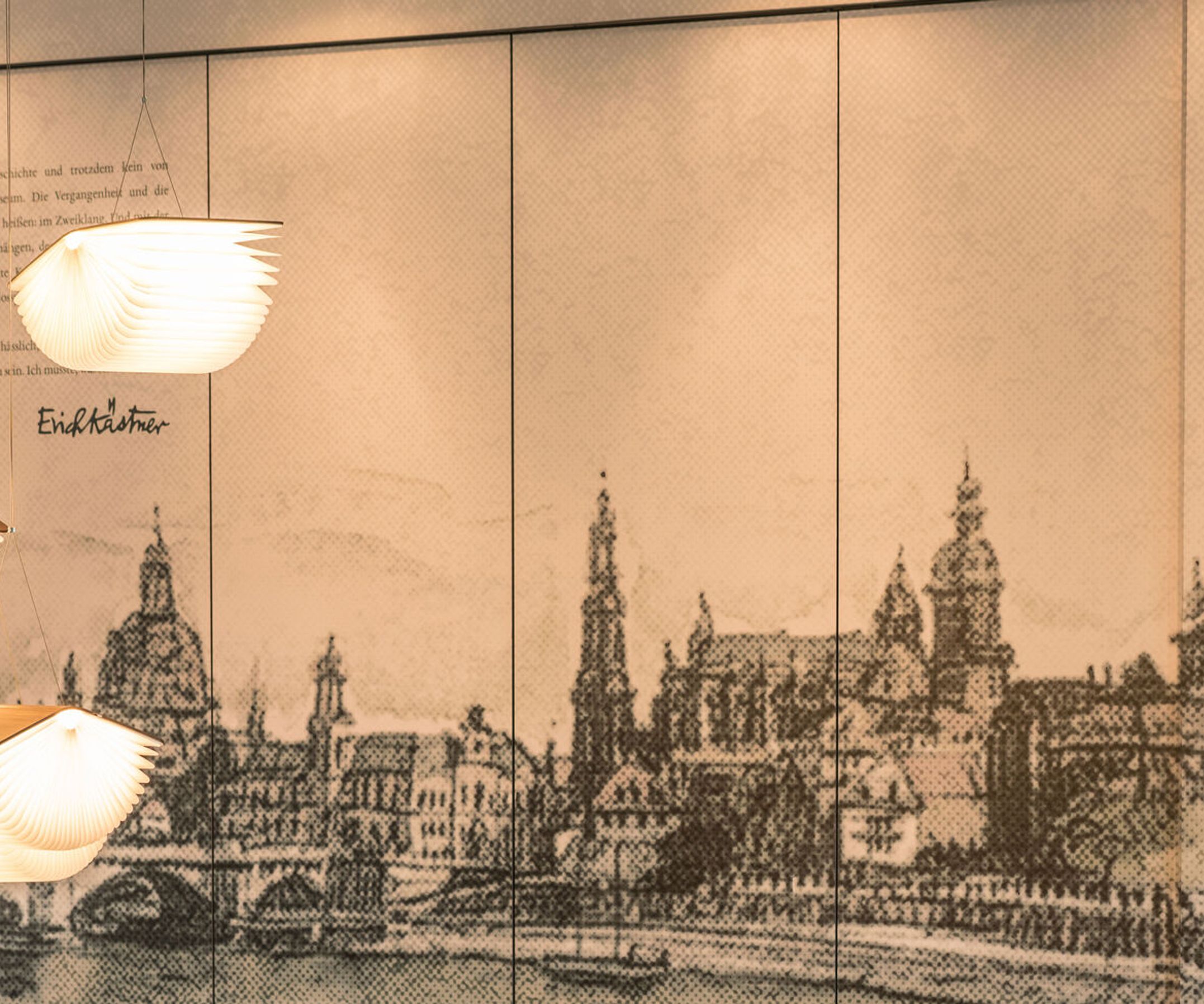 ‘Hooray for that little difference’: This quote by Erich Kästner was something we took to heart when working on the design for Motel One Dresden-Palaisplatz. We made sure to get even the smallest details right. The theme of the hotel’s interior design is something of an open book, with everything revolving around the Dresden-born author himself, and, of course, his wonderful stories that have won over our hearts.