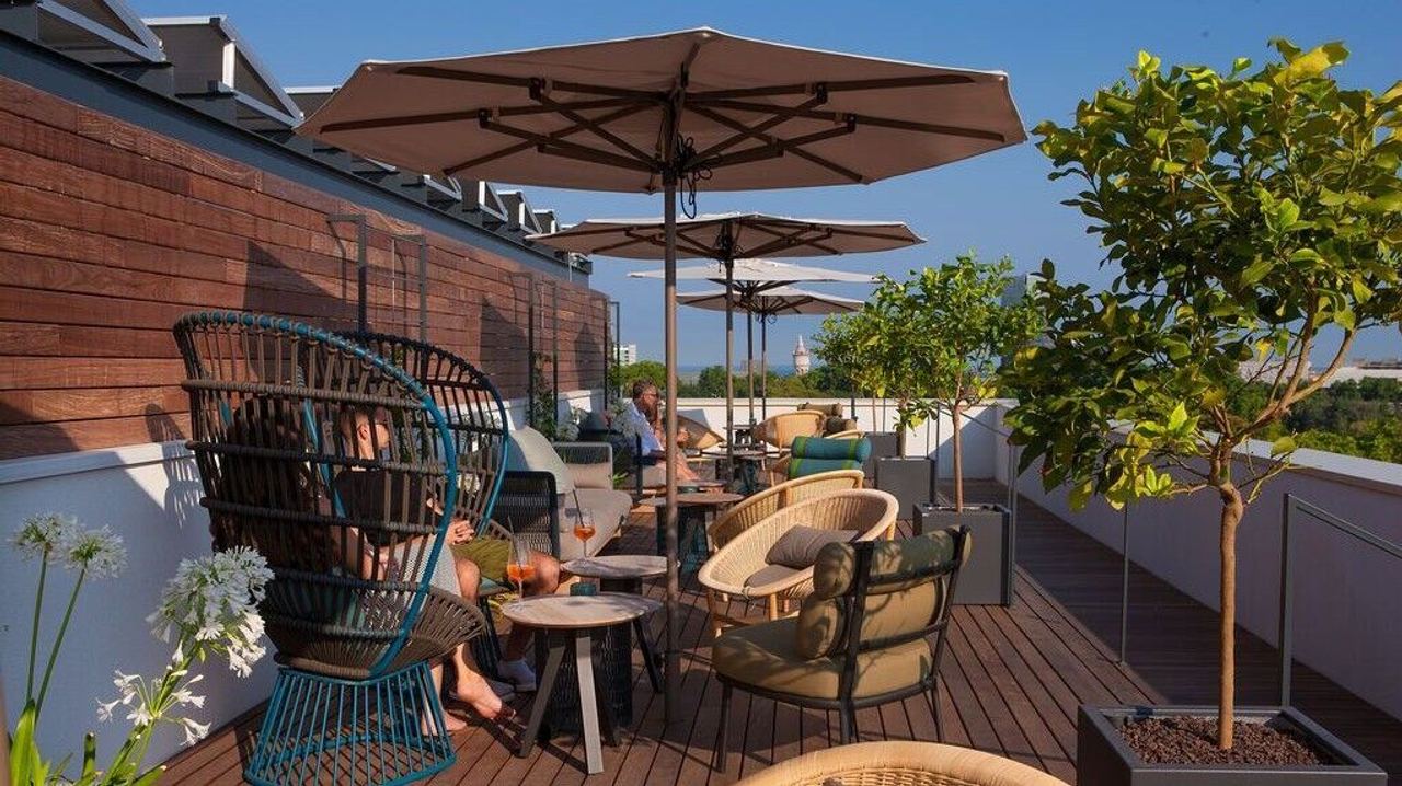 We love it here because not only are you closer to the sun on our roof terrace, you also have an exceptional view over Augustusplatz.