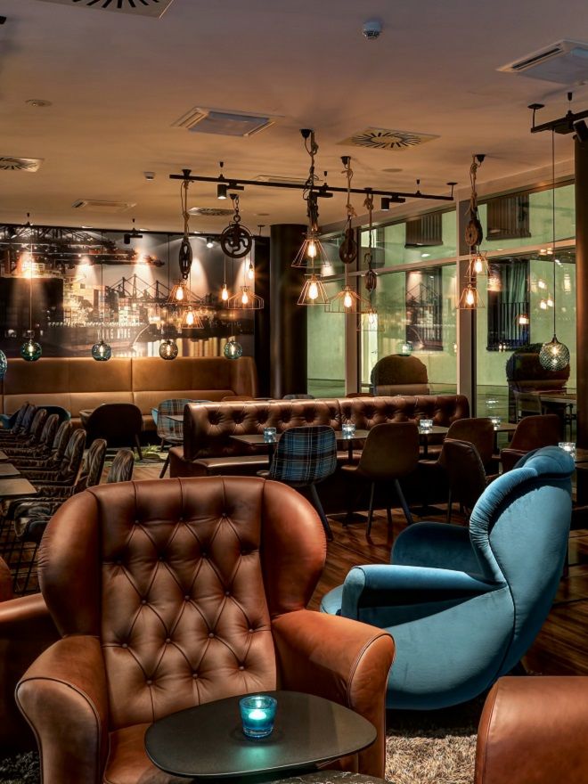 El puerto de Hamburgo es la puerta al mundo y comunica la metrópoli con los siete océanos. En las inmediaciones de los desembarcaderos no solo le damos la bienvenida a nuestro Motel One Hamburgo-Altona a los marineros, sino también a la gente de negocios y a los turistas. En la cómoda One Lounge puede comenzar el día con un desayuno equilibrado, dejarse llevar por la nostalgia de los países de ultramar disfrutando de un café o contar anécdotas de marineros acompañado de una copa de vino. El vestíbulo también se asemeja al puerto y retrata el barrio de Speicherstadt además del buque de pasajeros Queen Mary 2, la «Reina de los Mares». En nuestro hotel económico de diseño lo único que no tiene nada que ver con la navegación es su habitación. Aquí no le espera un camarote balanceante, sino una cómoda cama.