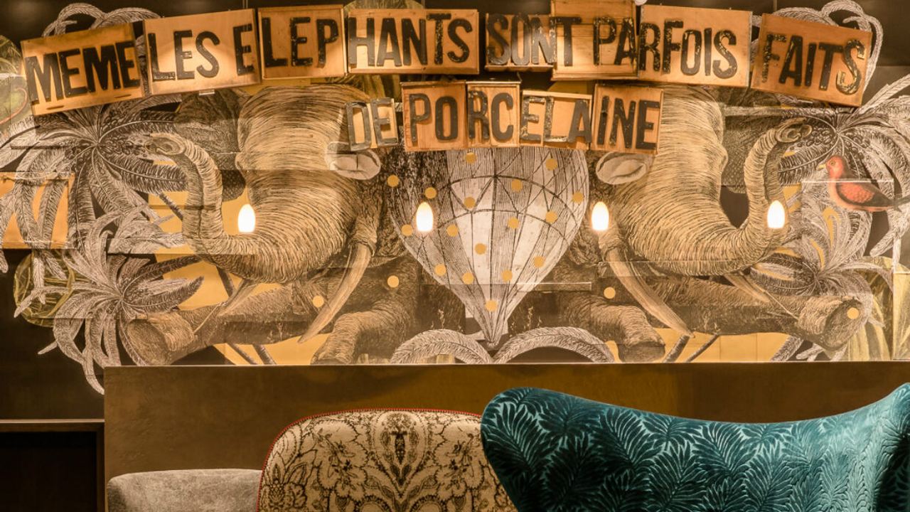 La réception de notre hôtel design fait également la part belle aux animaux : par le biais de collages en 3D, l’artiste de rue parisienne Madame Moustache met en scène deux grands éléphants et associe ces derniers au comptoir de la réception dans un style Shabby chic parisien très authentique. Les luminaires en porcelaine suspendus de Tobias Grau viennent compléter l’ensemble et font de notre réception un véritable accroche-regard pour les amateurs de design.