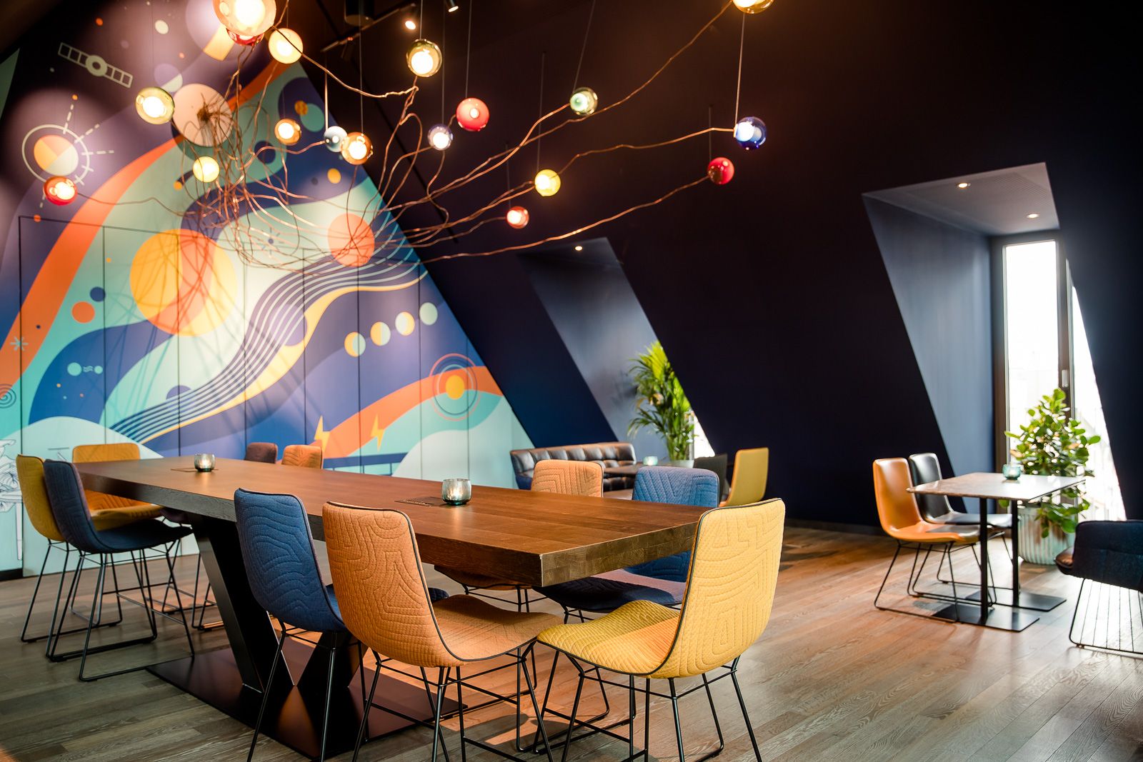 Zelf bij ons uitgebreide ontbijt draait alles om de natuurwetten. Werp een blik op de rijkelijk versierde muren en plafonds en ga helemaal op in het dansspel van de moleculen.