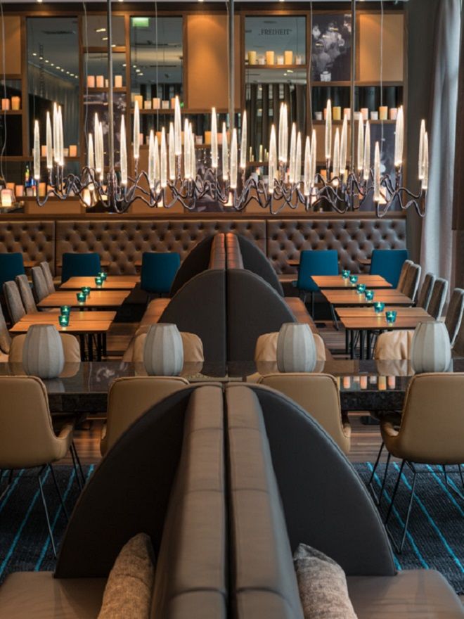Oczy szeroko otwarte – uszy również! W Motel One Lipsk-Augustusplatz pozwól się porwać dźwięcznej muzycznej historii Lipska, która dzieje się tuż obok. Rozkoszuj się panoramicznym widokiem na kościół św. Mikołaja z przytulnej restauracji One Lounge na pierwszym piętrze. To tutaj zaczniesz dzień od zdrowego śniadania i zainspirujesz się eleganckim designem, szlachetnymi materiałami oraz pięknym widokiem. Zarówno jako gość hotelowy, jak i przechodzień, jesteś zawsze mile widziany w naszym barze One Bar na parterze bezpośrednio przy pasażu teatralnym. Portrety słynnych osób związanych z kościołem św. Mikołaja przyglądają Ci się, gdy delektujesz się wyśmienitą kawą bądź wyszukanymi koktajlami.