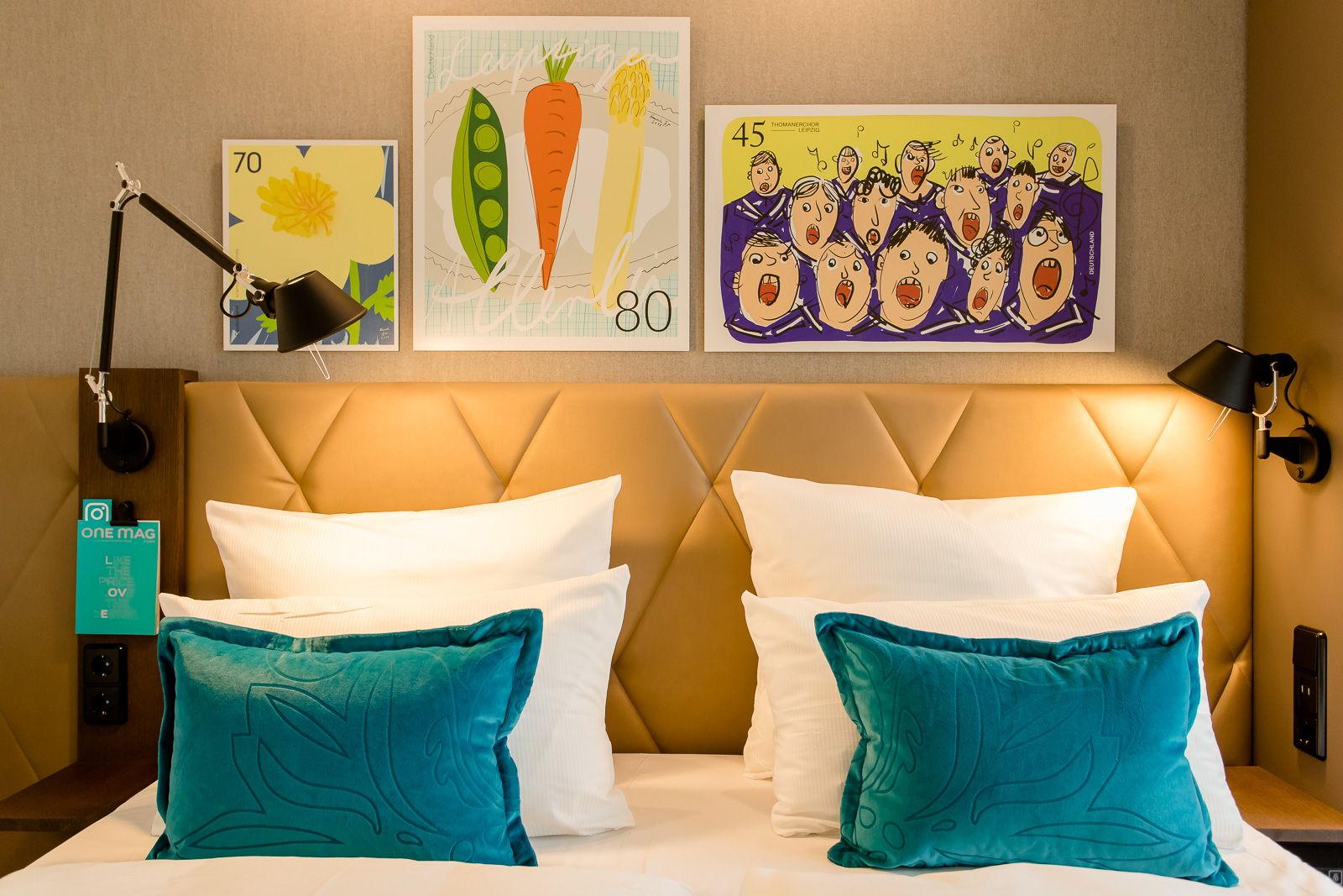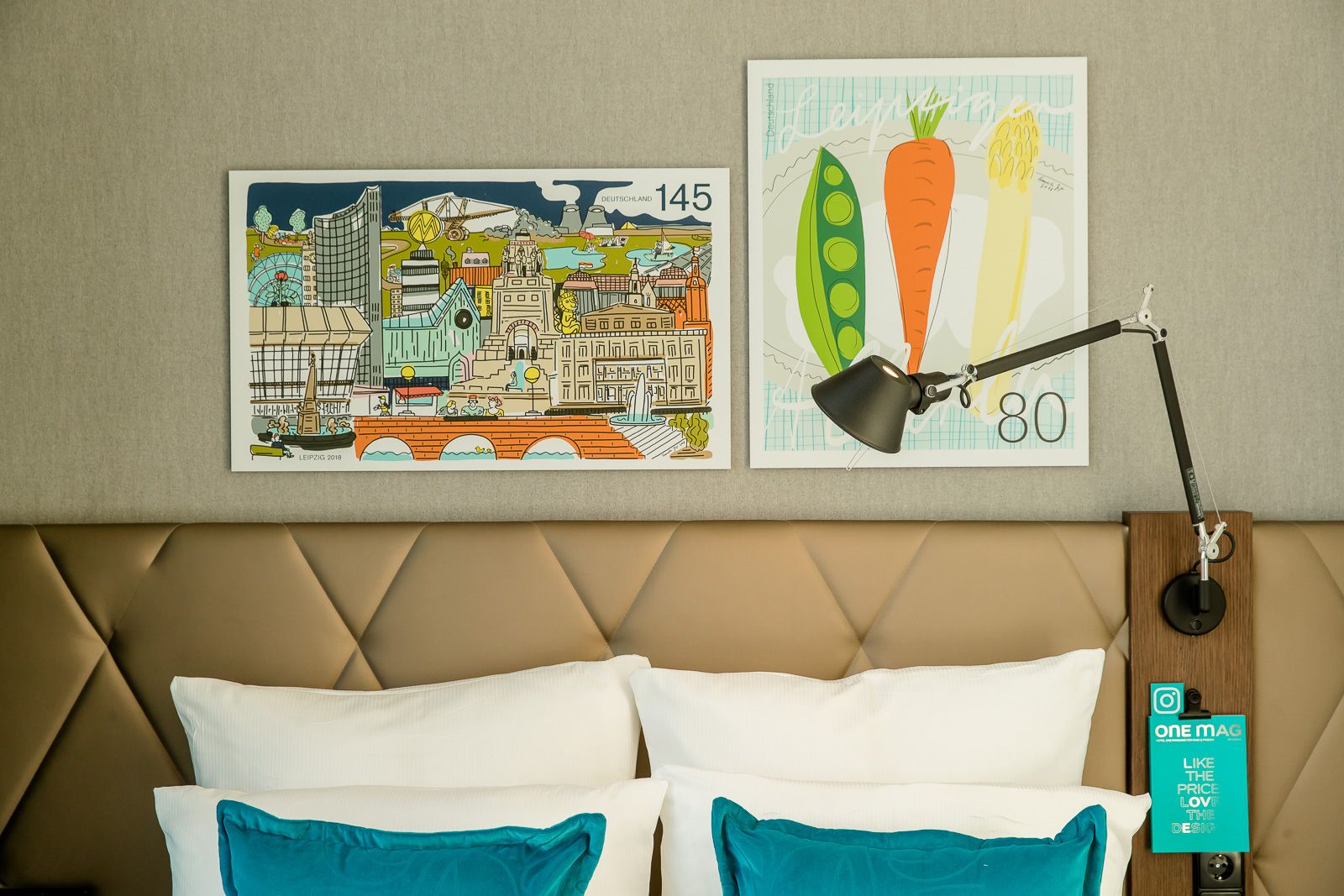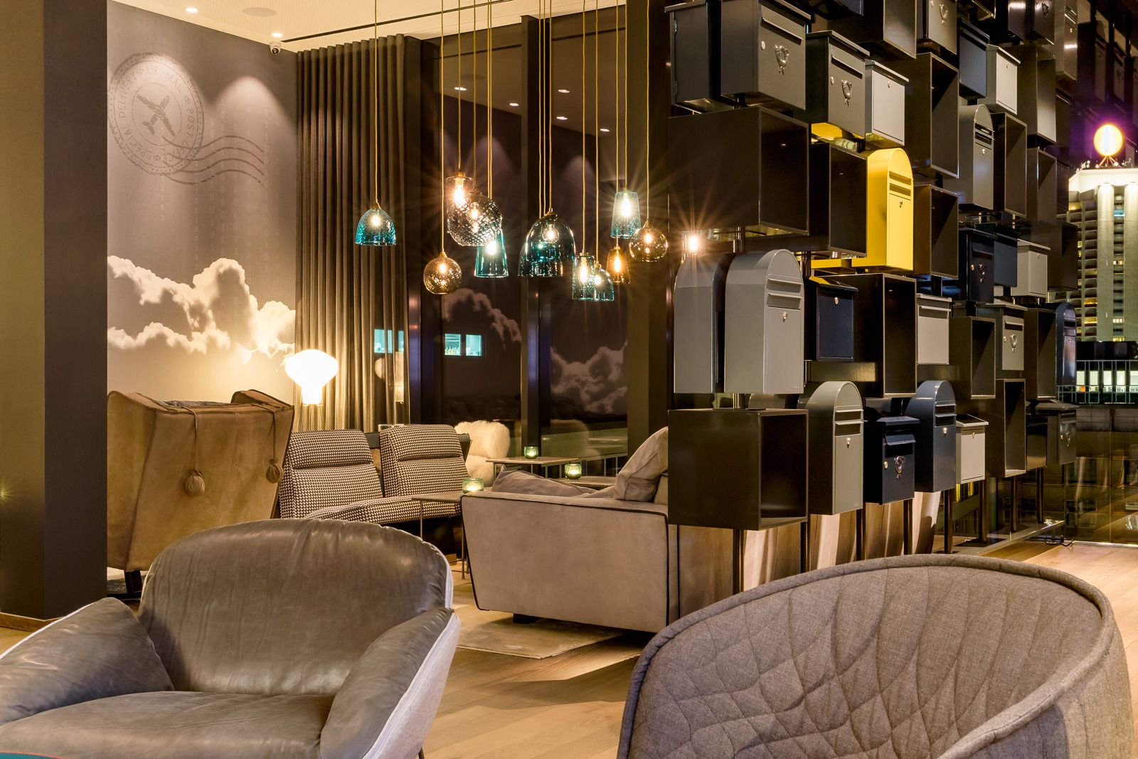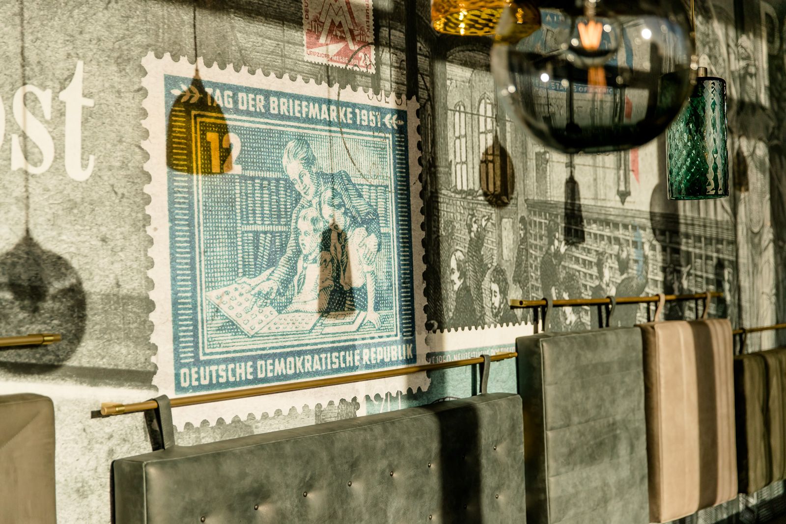 Tak więc decyzja co do wystroju naszego hotelu w Lipsku zapadła natychmiast: co innego można było zrobić, jak nie kontynuować tę tradycję w samym centrum miasta? Już w recepcji powitają Cię złote trąbki pocztowe oraz oryginalna skrzynka na listy, a lampy sufitowe Ingo Maurera i marki Gubi będą przywodzić na myśl czasy telegramów. W dzisiejszej epoce e-maili są to niemal romantyczne akcenty. Od stolików przypominających paczki, przez kolaże z kartek pocztowych, aż po dywan z motywem znaczka pocztowego – w naszym niedrogim hotelu w Lipsku znajduje się niezliczona ilość detali do odkrycia. Naturalnie wszystkim tym szczegółom towarzyszy komfort, który dobrze już znasz także z naszych pozostałych hoteli Motel One. Czeka Cię tu ekologiczne śniadanie, wysokiej jakości łóżka kontynentalne, elegancki bar z wyszukanymi drinkami… potwierdzamy to listem z pieczątką!