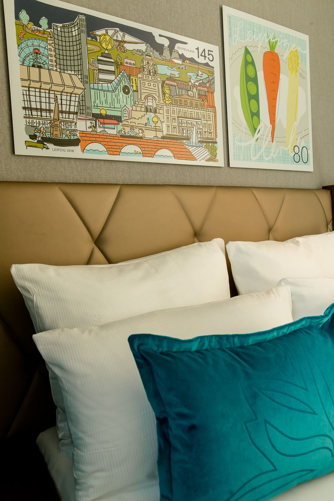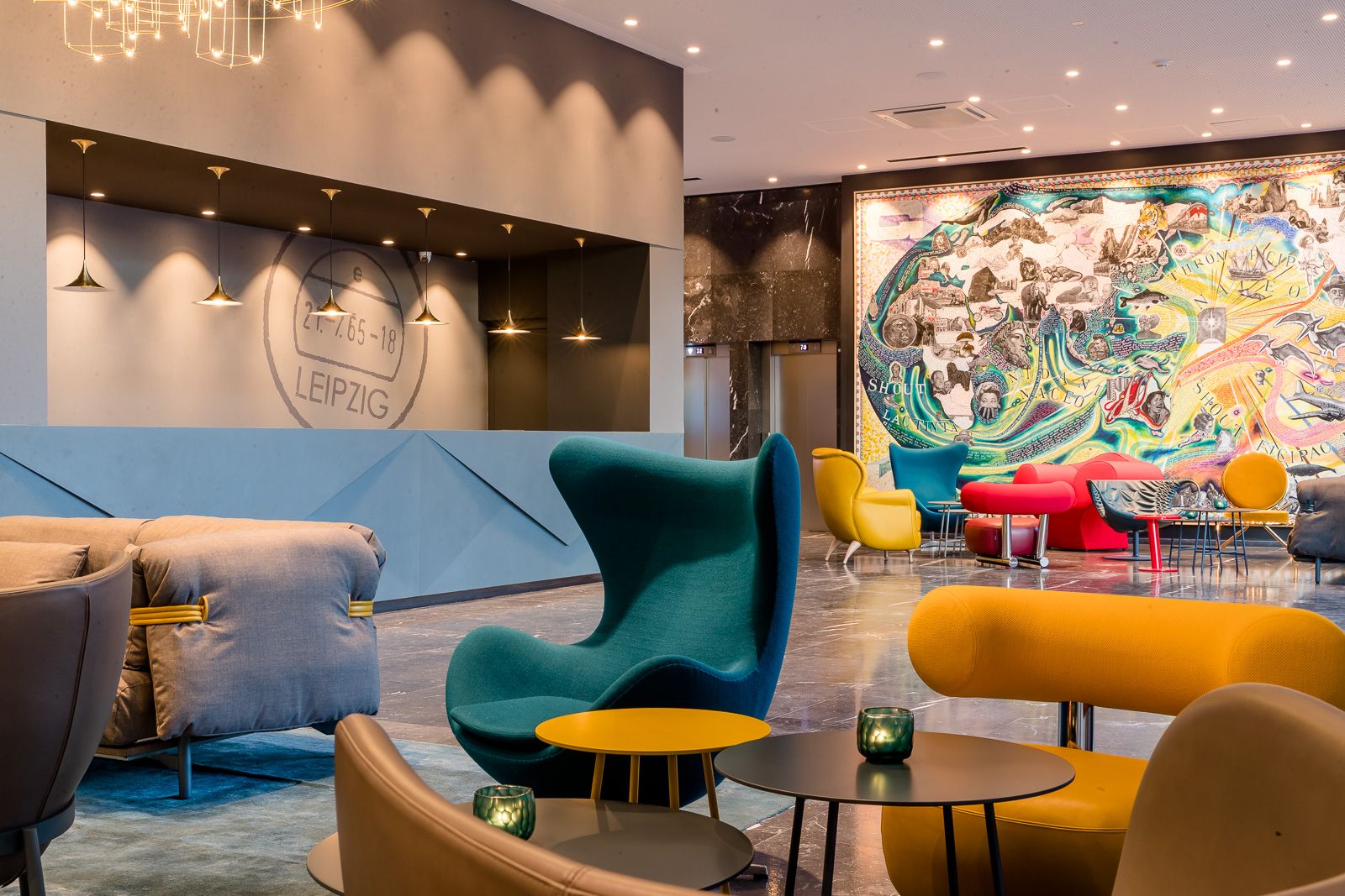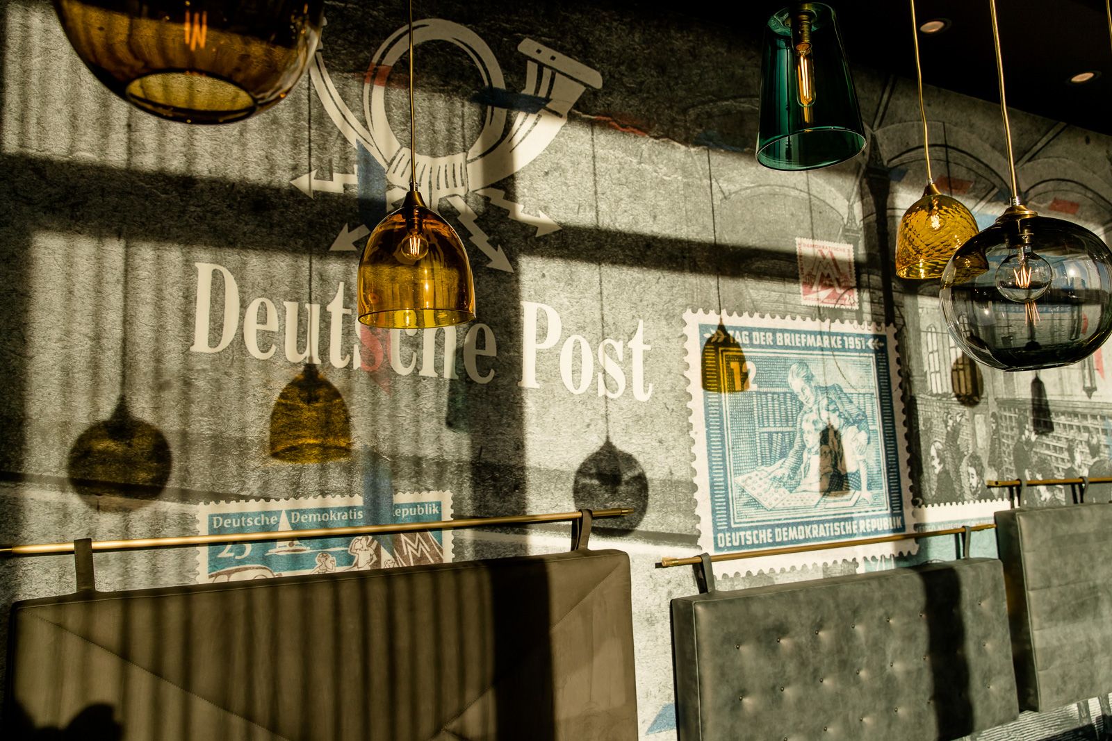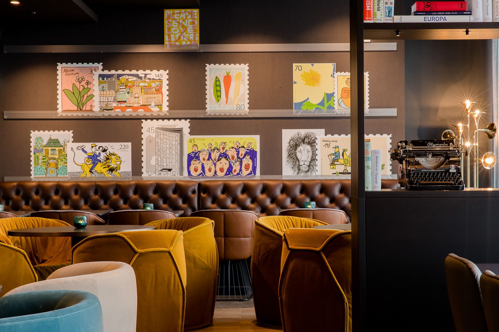 Tak więc decyzja co do wystroju naszego hotelu w Lipsku zapadła natychmiast: co innego można było zrobić, jak nie kontynuować tę tradycję w samym centrum miasta? Już w recepcji powitają Cię złote trąbki pocztowe oraz oryginalna skrzynka na listy, a lampy sufitowe Ingo Maurera i marki Gubi będą przywodzić na myśl czasy telegramów. W dzisiejszej epoce e-maili są to niemal romantyczne akcenty. Od stolików przypominających paczki, przez kolaże z kartek pocztowych, aż po dywan z motywem znaczka pocztowego – w naszym niedrogim hotelu w Lipsku znajduje się niezliczona ilość detali do odkrycia. Naturalnie wszystkim tym szczegółom towarzyszy komfort, który dobrze już znasz także z naszych pozostałych hoteli Motel One. Czeka Cię tu ekologiczne śniadanie, wysokiej jakości łóżka kontynentalne, elegancki bar z wyszukanymi drinkami… potwierdzamy to listem z pieczątką!