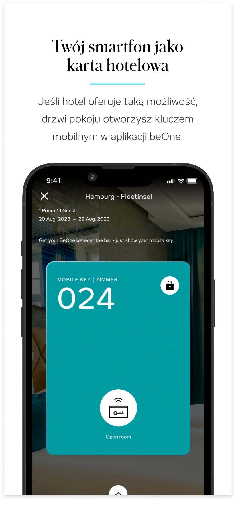 Jako członek beOne możesz wygodnie i elastycznie zameldować się online, niezależnie od tego, gdzie jesteś. Ale to jeszcze nie wszystko: W wybranych hotelach Motel One drzwi do pokoju możesz otwierać za pomocą klucza mobilnego i smartfona.